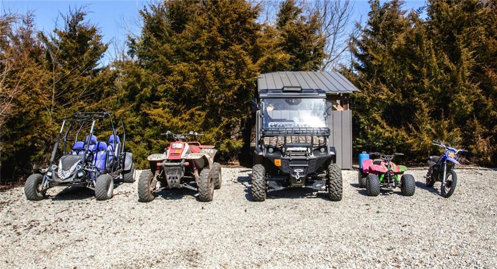 FUN PACKAGE AT LINN VALLEY! What you see pictured is what you get and more. Three (3) spacious cleared lots are flat and 90% covered with 1-year-old AB3 gravel. The lot numbers are 3557, 3558, and 3568. There are 2-12x13 sheds with ramps and garage doors. The property includes a wood-burning stove with a blower so you can still come out to play and keep warm in the fall and winter months. It also has a satellite internet dish, so you will never miss a game! Seriously, this is the full setup. This property comes with everything you need for the best summers ever! From outdoor gear to recreational amenities, your summer adventures await. This is your chance to own a piece of paradise in Linn Valley Lakes.