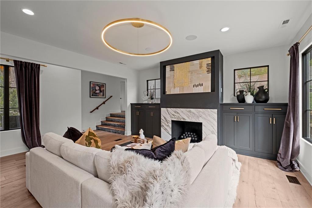$1.1 Million in renovations inside and out! This Modern Tudor on Ward Pkwy sets back in a cul-de-sac with on an expansive and private 0.42-acre treed lot with a gated & heated driveway leading to two garages, with 4 unique parking places! The new modern architectural landscaping with heated granite steps will lead you through the stunning front door. Step into an exquisite entry way with herringbone engineered hardwood floors leading into an open floor concept with a formal living room & fireplace with a tucked away sitting area/office space. The glamorous CHEF's Kitchen features an oversized MARBLE waterfall edged island with storage, stainless steel Subzero & Wolf appliances, icemaker, pot filler, ample soft closed cabinets for storage & a pantry! Even more entertaining space with a beautiful dining area, & family room with marble surround fireplace with built-in cabinetry. This main level boasts with elegance, and sophistication! Steps away, your spacious Master Suite Retreat is complimented with a coffee bar, spa shower, free-standing tub, & a large custom walk-in closet. The main level finishes out with a flex room up the stairs by the primary bedroom and laundry/mudroom. The upper-level floor greets you with a loft area with wet bar, a 2ND MASTER BEDROOM EN SUITE with walk-in closet which is only 1 of the 3 bedrooms on this level, & another full bathroom. A spiral staircase will lead you to a 3rd Floor VERSATILE PRIVATE OASIS with a SAUNA! An outside canopy of trees awaits you for relaxation or entertaining on a large stone patio, with a built-in grill, and a fireplace leading up to a newly landscaped fenced in backyard offering children and/or pets' space to run and play! This magnificent home is being sold AS-IS with new exterior and interior features such as electrical, plumbing, HVAC, lighting, doors, flooring, security system, sound system, wine display wall, smart thermostat, sprinkler system, & more!
