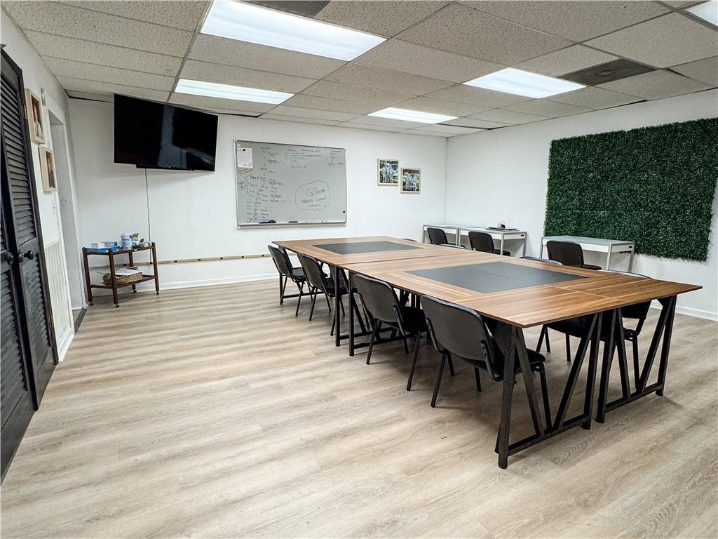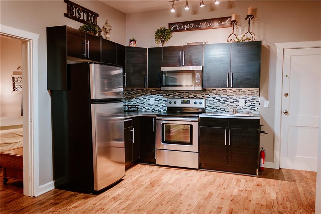 Beautiful remodeled commercial building! Property consists of two commercial office spaces and two residential units upstairs. One of the commercial spaces is currently being rented by the owners business while the other side is vacant and ready to be leased or moved into by new owners business. The two residential units upstairs are fully rented. Property has new floors, new paint, updated bathrooms, new custom glass wall dividers and so much more!