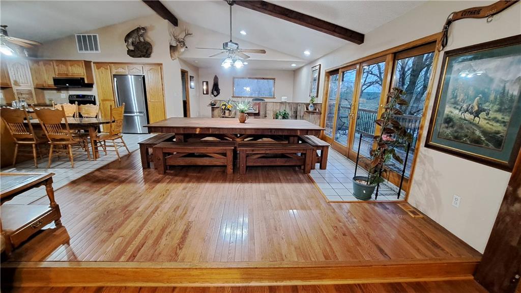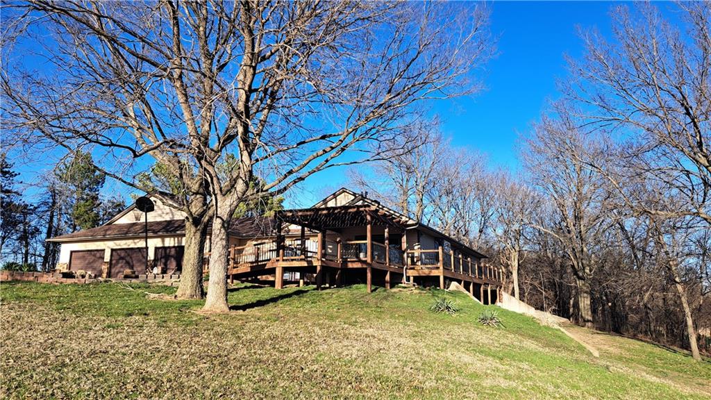 Nestled on approximately 6 acres of serene countryside, this one-of-a-kind home offers the perfect blend of rustic charm and modern convenience. The property boasts beautiful rock siding that enhances its unique character, while large oak and pine trees add to the tranquil setting. With sweeping views in every direction, this home is the ideal escape. The spacious three-car garage (40x30) provides ample storage and workspace, while the expansive deck is perfect for enjoying the stunning surroundings and entertaining guests. The walkout basement opens up to the lush yard, giving you easy access to nature's beauty just outside your door. Inside, the home features a grand open concept design with a large fireplace as the centerpiece of the front room, offering a cozy yet impressive space for relaxation. The dining room and kitchen flow seamlessly, creating a welcoming atmosphere for family gatherings and meals. The office area and mud room provide additional functional spaces to suit your needs. With four spacious bedrooms and three bathrooms, there is plenty of room for everyone. The full basement adds extra living space, perfect for a family room or recreational area. Whether you're seeking peace and quiet or a place to entertain, this property has it all. Come experience country living at its finest—schedule your showing today!