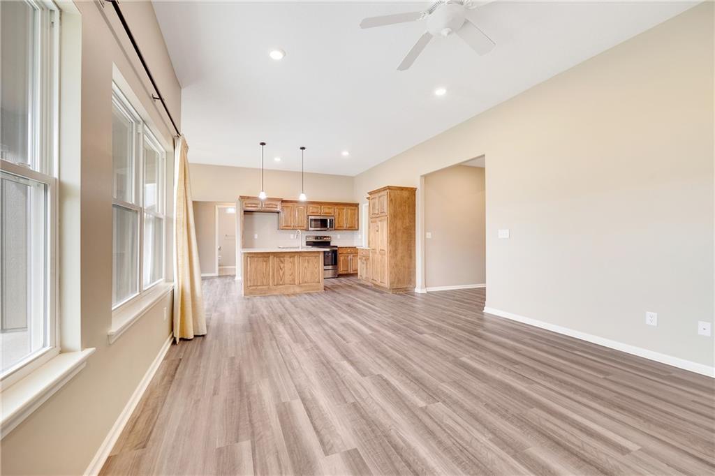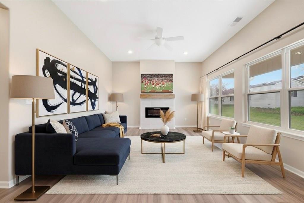 Welcome to this delightful ranch-style gem where comfort, efficiency, and style come together effortlessly! With 3 spacious bedrooms and 2 full bathrooms, everything you need is conveniently on one level—no stairs, just easy living. The bright, open-concept living area is perfect for gathering with loved ones, complete with a cozy fireplace for relaxing nights in. The kitchen shines with sleek granite countertops, an upgraded electric range, and dishwasher—ready for both home-cooked meals and entertaining. This all-electric home features a high-efficiency heat pump and custom energy-assisting curtains to keep your home comfortable year-round while lowering utility costs. Both bathrooms offer operable windows for fresh airflow, a rare and refreshing touch in modern construction. Step outside to your extended, covered patio—ideal for morning coffee or weekend BBQs—plus a fully established, lush lawn that saves you the cost and effort of new sod. In winter, the sun naturally warms the driveway, helping snow and ice melt faster for easier, safer access all season long. A garage floor drain handles winter runoff with ease, and a fully insulated garage door keeps the space warmer and more efficient. With thoughtful upgrades inside and out, this home is truly move-in ready—designed for year-round comfort and easy living. *Some Photos have been virtually staged**