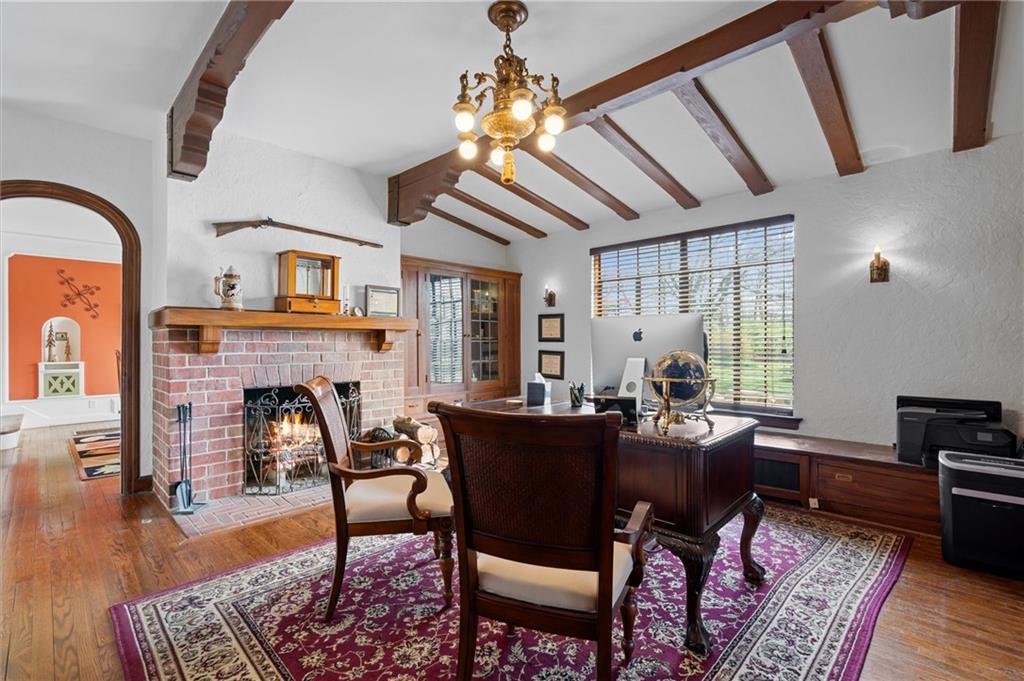 Nestled on a sprawling 6-acre corner lot in Excelsior Springs, this historic English Tudor-style estate offers a rare blend of timeless character and modern luxury. With over 6,000 sq ft of living space, the home boasts original architectural details at every turn—from a grand entryway and elegant woodwork to multiple staircases (including a service staircase to the butler’s quarters) that harken back to an era of gracious living. This 4-bedroom, 6-bath residence (3 full, 2 half, plus a main-level powder room) features a very large master suite as a tranquil retreat, while the additional bedrooms are generously sized and filled with charm. Modern comforts are thoughtfully integrated throughout, including an updated gourmet kitchen that retains its vintage elegance. The original butler’s quarters adds flexibility, perfect as a private guest suite or home office. A standout feature is the expansive attic—over 1,600 sq ft of untapped potential — truly a blank canvas ready to transform into extra bedrooms, a studio, or a playroom. Downstairs, the finished basement is an entertainer’s dream, complete with a pub-style wet bar, open recreation space, and ample storage—ideal for game nights and casual gatherings. Outside, the 6-acre grounds form a park-like oasis of lush landscaping and mature trees, offering both grand spaces for outdoor entertaining and secluded corners for peaceful relaxation. Whether hosting summer barbecues or enjoying a quiet morning coffee with nature, the possibilities are endless on this private estate. 8 Orchard Place seamlessly marries historic elegance with modern comfort. With its unique architectural character, luxurious updates, and room to grow, this one-of-a-kind Tudor estate invites you to own a piece of Excelsior Springs history. Don’t miss the chance to experience the grandeur and charm of this extraordinary property—your dream home awaits.