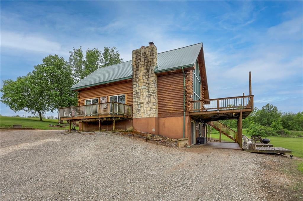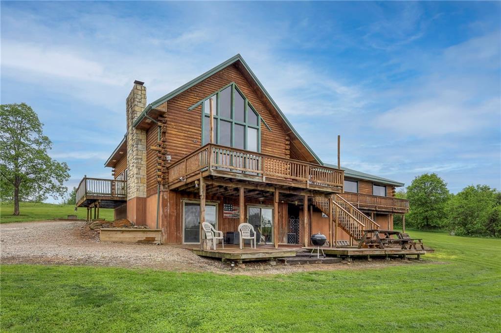 Welcome to Your Private Oasis! Discover this beautifully remodeled log home nestled on 40 acres of stunning, private land. This spacious retreat offers a custom kitchen and a large living area that opens to a charming back porch with views of your serene pond. With 6 bedrooms and 3 full bathrooms, everything is brand new following a recent renovation. The main level features 3 bedrooms, including the Primary Suite, while the fully finished basement offers 3 additional bedrooms, a full bath, and a game room — perfect for relaxation and entertainment. Enjoy incredible sunset views from one of the three expansive patios surrounding the home. Whether you're unwinding or entertaining, you'll love the outdoor space. This expansive property is ideal for hunting, farming, and recreation. A large storage building with electricity provides ample room for farm equipment, vehicles, and more. This home has been meticulously maintained and is ready for you to make it yours! Don’t miss out on this one-of-a-kind property—schedule your appointment today!