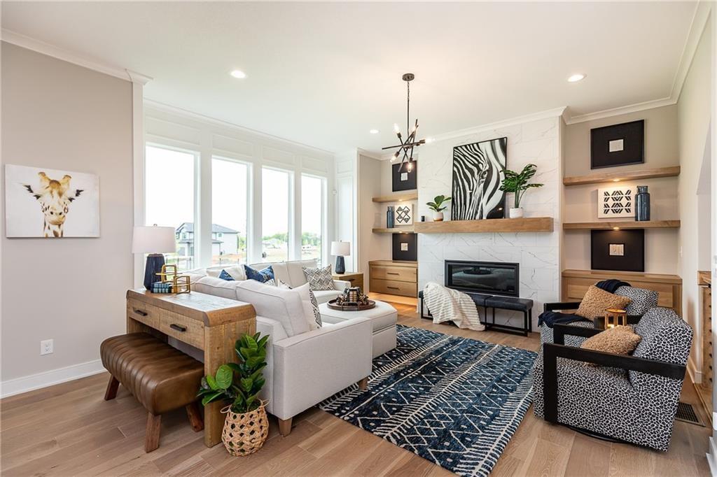 The Award Winning "Makenna" 2 Story floorplan is now underway at Heritage Ranch! This home features the innovative "Contemporary" front elevation. As you enter thru the covered front porch into the spacious foyer, the office is off the entry with a large front window for ample natural light. As you venture into the Great Room with your splendid fireplace you can enjoy a lovely area for entertaining. Dining room next to the sliding door out to the exterior living space of the covered deck. The Kitchen is designed with plenty of counter space and and cabinet storage, next to a wonderful pantry for all your culinary and storage needs. There is a coat closet off the garage entry into the home, next to the boot bench and main level half bath. Up the stairs to 4 bedrooms. The Primary En-Suite has double vanities, tall ceilings, a sitting room and a primary spa-like bathroom with a freestanding tub, tiled shower with seat, and walk-in closet. Bedroom #2 has its own bathroom and walk-in closet. Bedrooms #3 & #4 with their own walk-in closets, bathroom vanities and a connecting full bath with tub/shower. Bedroom Level Laundry. 3 car garage. All in the coveted Heritage Ranch, A Lambie-Rieke Community, with Amenities Galore such as state-of-the-art pool, clubhouse, trails, pickleball. play area, half-court basketball, ponds and so much more coming soon! This community provides a wonderful lifestyle and right next to the 1,238 Acre Heritage Park with Dog Park, Sports Parks, Golf, Lake, Trails and so much more! Contact Onsite Agents for Estimated Completion of homes on site, and design selections. Our Welcome Center Office is now open, located at Lot 65. We are open 7 days a week. Renderings &/or images may show features and sq ft that are subject to change. Home is Under Construction - Estimated Completion APRIL 2026. LOT 63. Welcome Home to Heritage Ranch - one of the last NEW Home Communities in Johnson County!