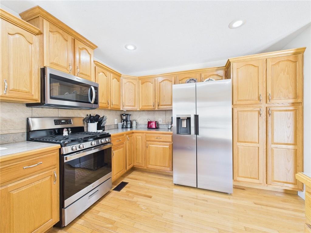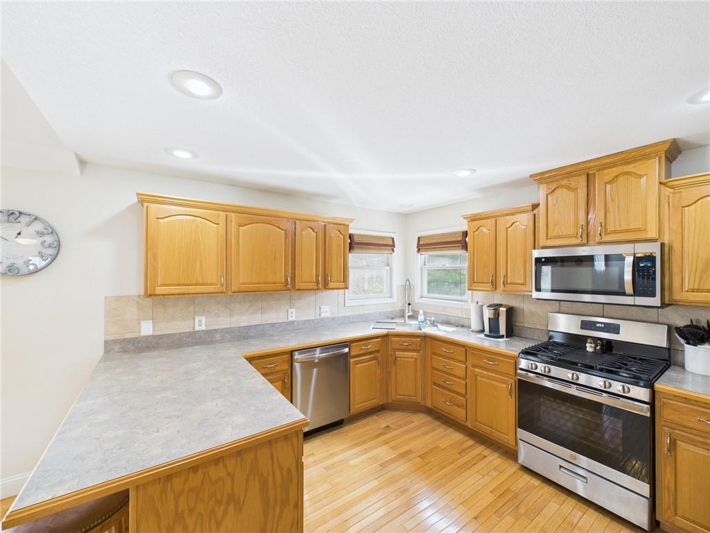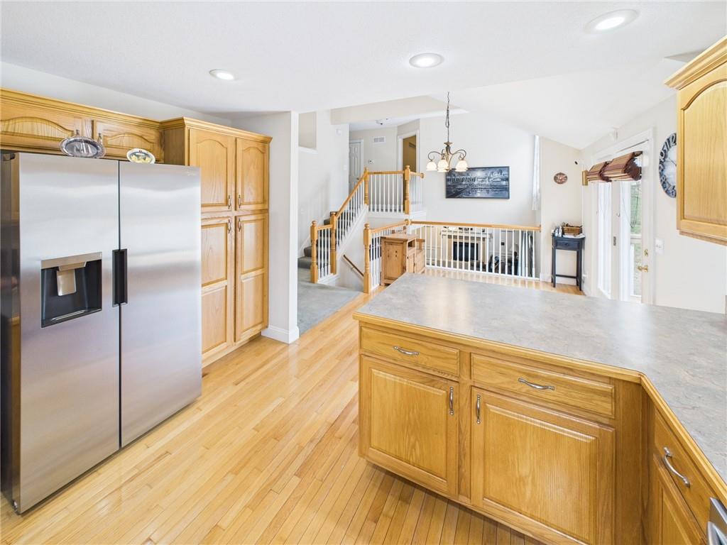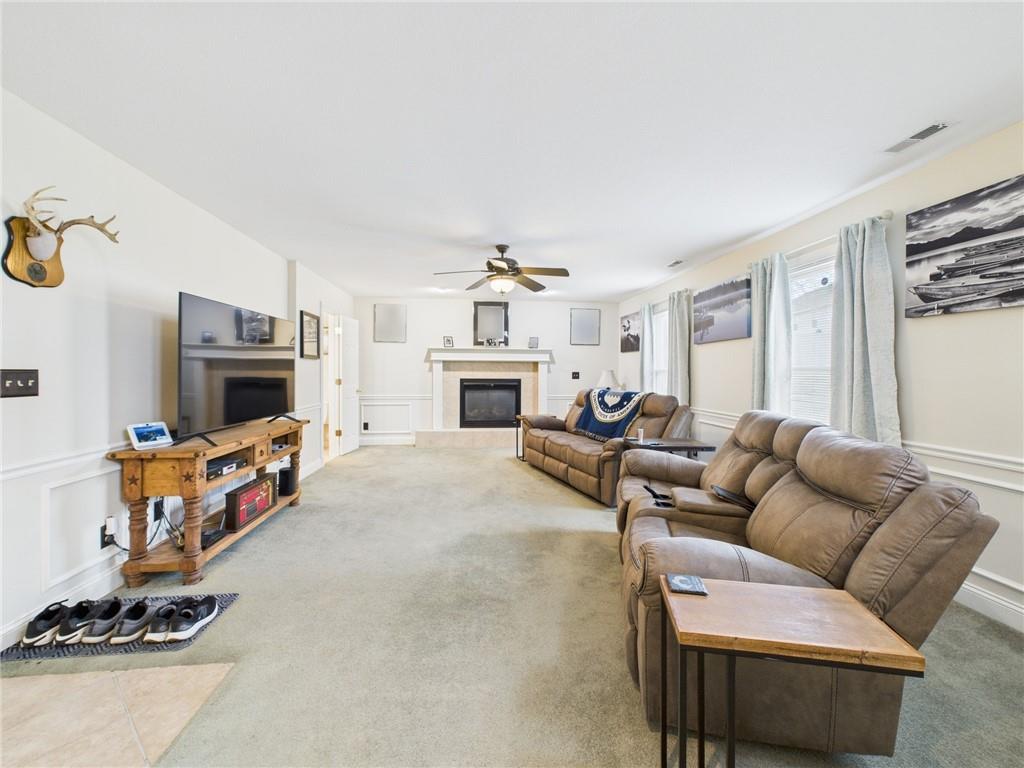 Ride your golf cart to the golf course from your new home! When your done at the golf course, come back to celebrate & entertain your friends with the unique bar setup on the lower floor! This home has 3 spacious bedrooms, 2.5 bathrooms and also has 2 living rooms! Enjoy stunning sunsets from the spacious, covered front porch—perfect for relaxing evenings. The newly updated kitchen boasts stainless steel appliances, peninsula, large amount of cabinets and counter space. The eat-in area that overlooks the living room below—ideal for hosting and staying connected. All three bedrooms & laundry area are conveniently located on one level. The primary suite is generously sized with a walk-in closet and a gorgeous en-suite bathroom featuring a large tiled shower with a glass door and stylish tile flooring. The additional two bedrooms are nicely sized with large walk-in closets, and a full hall bathroom completes the upper floor. The mid-lower level offers easy access to the HUGE 3 car garage, a half bath, and a spacious second living area and a cozy fireplace.—perfect for a cozy night in or entertaining guests. Head down to the finished basement, where you'll find a wet bar, dedicated entertaining space, walk-out access to the backyard, and a HUGE storage room. This home truly has it all—space, style, and functionality.