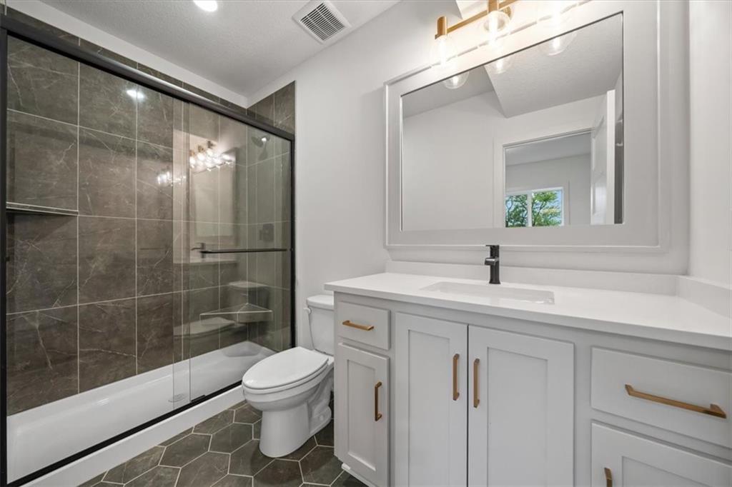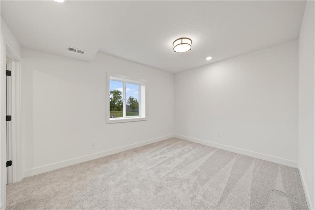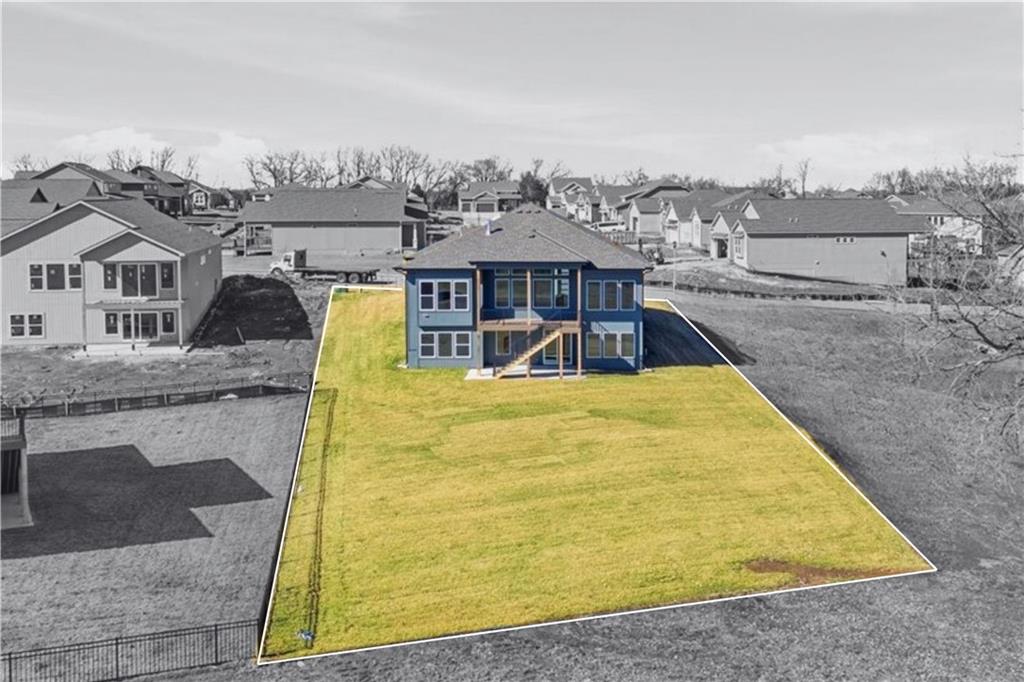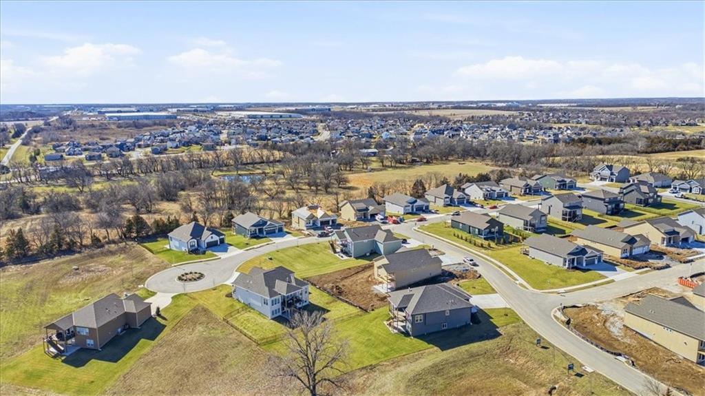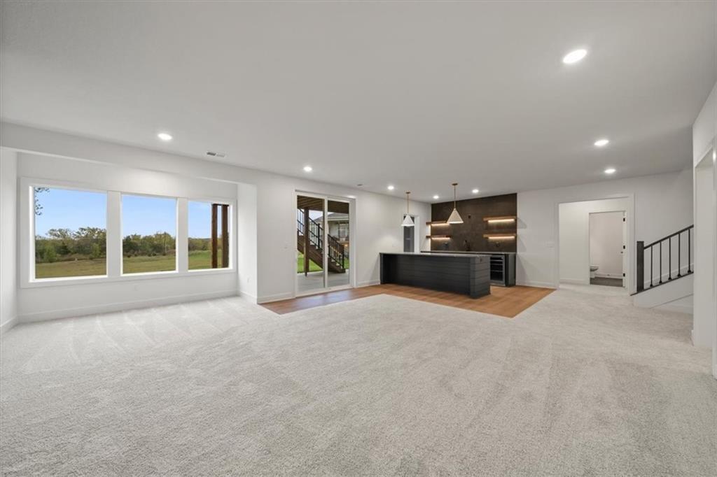A setting that is seldom available! MOVE-IN READY and a RARE 5-bedroom retreat! This home offers both prestige & space! Elevated living where scenic views, modern style, & everyday convenience come together beautifully. Enjoy LOW HOA dues & quick highway access while living in a community which will have entire home building construction complete by years end. Bordered by TWO GREEN SPACES & on an ESTATED-SIZED lot of over 18,000 sq ft. Luxury begins the moment you pull into the garage, thoughtfully extended for extra room, fully insulated for year-round comfort, & finished with painted walls that elevate it from simple utility to a refined extension of the home. Inside, the spectacular great room stuns with soaring 11 ft ceilings, a gas fireplace, built-in bookshelves with under-shelf lighting, & expansive Low-E Pella windows that flood the space with natural light. The designer kitchen features quartz countertops throughout, an oversized island with generous storage, custom cabinetry to the ceiling, & a walk-in pantry with electrical outlets. Take in RARE scenic views from the oversized covered composite deck – over 20 ft wide with 12 ft ceilings, creating a seamless indoor-outdoor experience that feels grand & inviting. The primary suite easily accommodates a king-size bed & multiple furniture layouts without sacrificing the spacious, luxurious feel. The primary bath seamlessly blends beauty & function. Featuring sleek double vanities, dual shower heads, & modern fixtures. The expansive walk-in closet feels like a private dressing suite, with generous storage & space to display your wardrobe. The finished lower level expands your lifestyle even further with three bedrooms & two baths, including a SECLUDED SUITE with its own en-suite bathroom. A full wet bar with TWO beverage fridges, a recreation room designed for gathering, an electric fireplace, & sliding door access to a covered patio create the ultimate setting for hosting, entertaining, or relaxing in style.