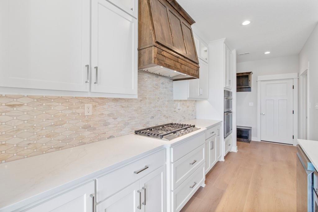 Gorgeous new construction in The Estates at Knoll Creek by Drumm & Riegert Homes! This reverse 1.5 story home blends custom design with modern comfort and energy efficiency. The covered front porch leads into a welcoming foyer and an open-concept main level. The great room boasts tall ceilings, a cozy fireplace, and oversized windows that flood the space with natural light. The heart of the home is the impressive kitchen with custom cabinetry, a large island, gas cooktop, wall oven, and a walk-in pantry—perfect for cooking and entertaining. The primary suite is stunning with a serene backyard pond view, and the ensuite bath offers a spa-like escape with a soaker tub, tiled shower, double vanity, and access to a spacious walk-in closet that connects to the laundry room. Downstairs, the finished daylight basement features 3 additional bedrooms, 2 full bathrooms, a family room, wet bar, storm/safe room, and ample storage. Step outside to a large covered deck overlooking the peaceful community pond. Located in Raymore—just minutes from Kansas City—this friendly, growing town offers top-rated schools, shopping, dining, parks, and walking trails. Don’t miss this incredible opportunity!