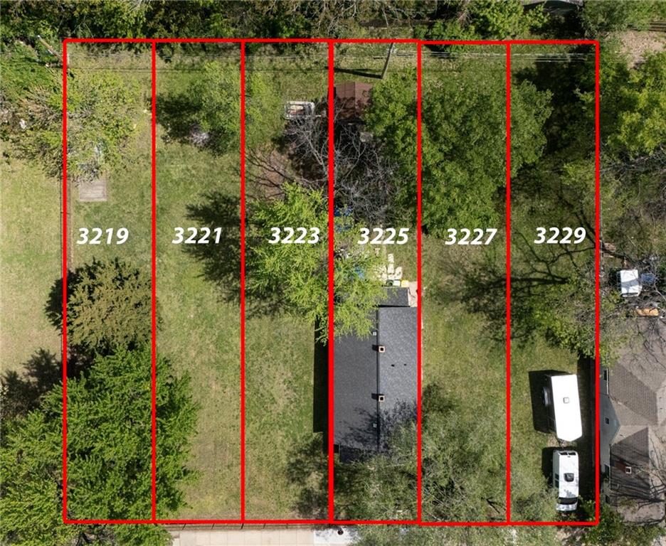 EXCEPTIONAL INVESTMENT OPPORTUNITY. Zoned R 2.5, these six contiguous lots totaling 19,500+ sq ft are prime for residential development! Entire group of parcels are securely fenced together on a mature tree-lined street in North Hyde Park. Rare offering of 150 ft of street frontage. Great walkability, steps from Tower East/Martini Corner, and KC Street Car routes. Centrally located between Country Club Plaza, Crossroads Arts District, and Downtown. Near Truman Medical Center, Children's Mercy Hospital, UMKC, and close highway access. Lots included in this package are 3219, 3221, 3223, 3225 (home located here), 3227 and 3229. Cross reference to Residential listing MLS# 2545185 PRICED TO MOVE THIS WON'T LAST LONG! Secure fence includes multiple drive-in gates, thicker posts mark approximate property lines. Existing house is functional and could be used as construction office during development or be rental ready with a few finishing touches! Properties are being sold "as is".