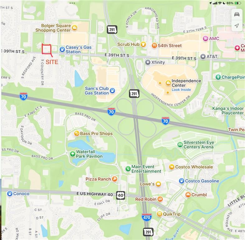 I-70 East to 291 Hwy North, to 39th Street S. Exit, go West on 39th Street S., property located on right