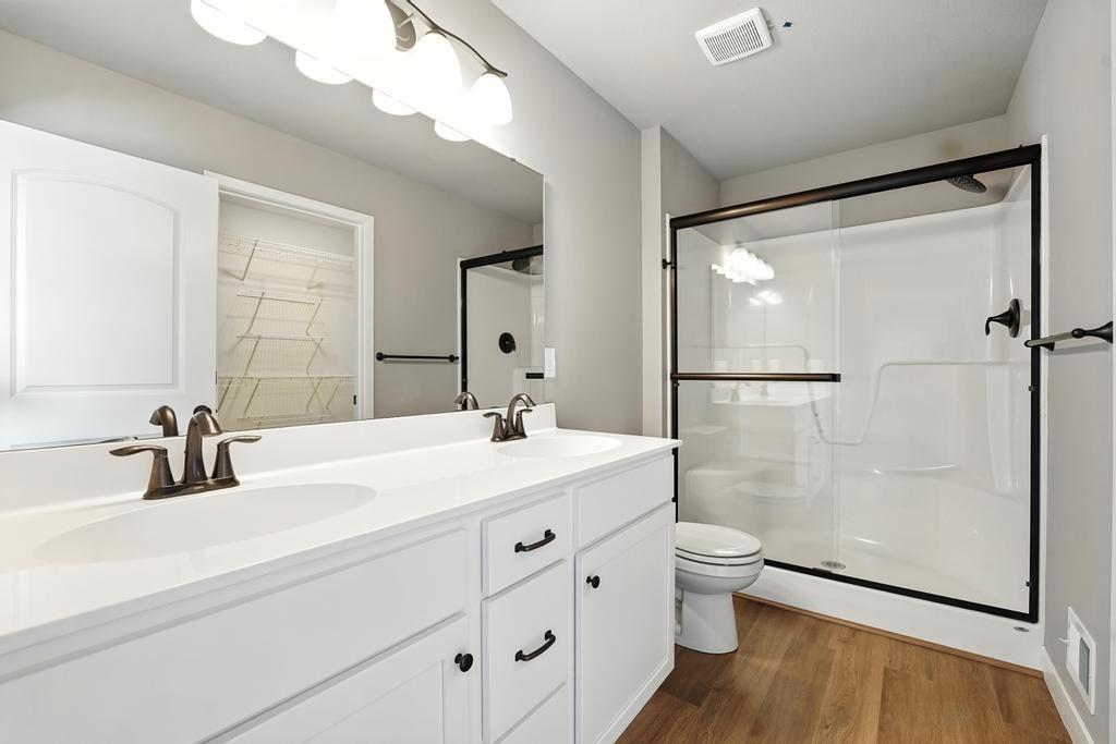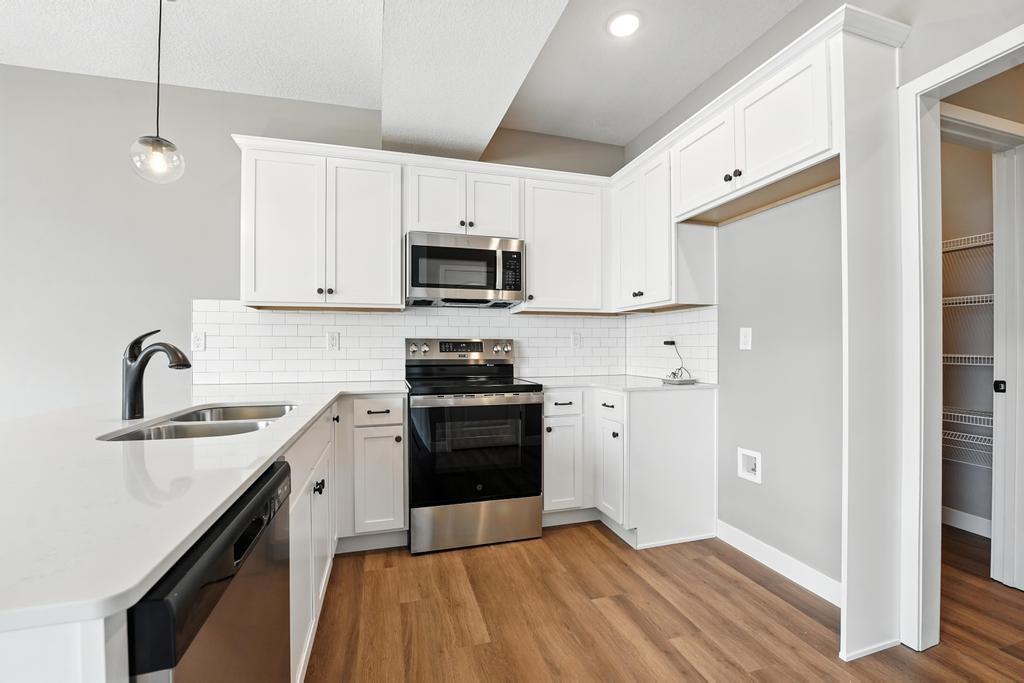 MOVE IN READY! This former model home is available well below reproduction costs offering 4 bedrooms, 3.5-baths, finished lower level, nestled on a corner lot and close to the community ammenities. Beautiful LVP flooring throughout the main level, Quartz countertops with a tile backsplash in the kitchen, large island bar for additional seating, stainless steel appliances, and an oversized walk-in pantry. A convenient half bath on the main level adds to the ease of entertaining and daily living. Upstairs, a versatile loft provides additional space. The generous 14x14 primary suite includes a private bath with a double vanity, walk-in shower, and large walk-in closet. Two additional bedrooms share a full bath, the laundry room is located on the bedroom level adding convenience right where you need it. The finished basement expands your options with a spacious rec room, fourth bedroom, and full bathroom. Located in the sought-after Woodlawn Estates, this home gives you close access to resort-style amenities featuring a sparkling pool, pickleball and basketball courts, frisbee golf, a playground, outdoor fire pit, and a fishing pond—designed for relaxation, recreation, and connection.