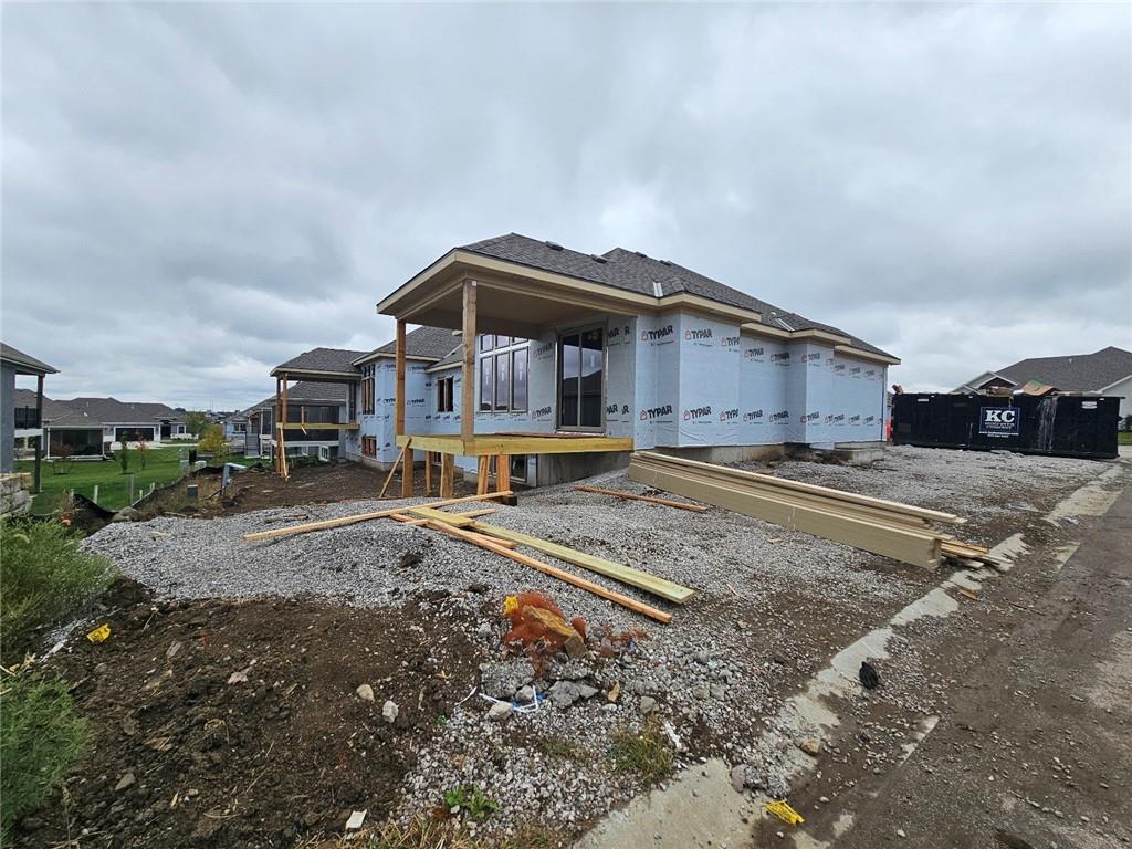 Popular Rev. 1.5 sty. Catalina plan by Crestwood Custom Homes w/the very desirable side entry garage & covered deck options! Located in The Villa's @ Sunnybrook East, Johnson Counties Hottest maintenance provided community by Prime Development Land Co.! Surprisingly open floor plan features a Great rm. w/FP & 11 ft ceilings, kitchen, Dining, Primary suite & 2nd bdrm. or Den on the main floor. Finished Daylight LL includes 2 bdrms., 1 bath, Recreation rm & wet bar! Custom Birch cabinetry & extensive trim details. Fabulous primary suite w/custom zero-entry walk-in shower & spacious walk-in closet! All of the quality & value you've come to expect from Crestwood Custom Homes!