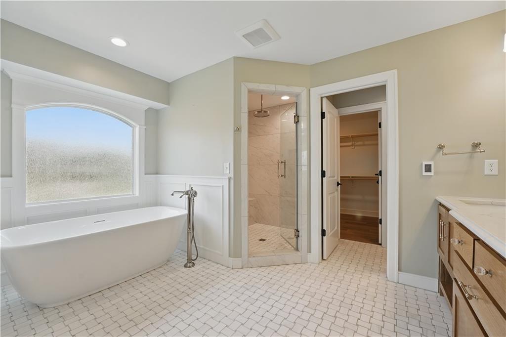 Award winning selections in Cedar Creek! Do you want a new home without the stress or the wait that goes with new construction? This is your chance! This is a rare opportunity to own an award-winning Gabriel Homes - Makenna 2 story that is less than 2 years old. Sitting on one of the best lots in Valley Ridge — backing to a beautiful, treed greenspace. It’s better than new, with the highest of finishes throughout! Step inside through the stunning double door entry into the main floor featuring 10-foot ceilings throughout. The main level office has been upgraded with custom built-ins along with double glass French doors. The expanded great room showcases a large gas fireplace with custom built-ins on either side, coffered ceiling treatment, and a wall of windows featuring upgraded wainscotting. The gourmet kitchen is every chef's dream, featuring beautiful floor to ceiling cabinets, a high end gourmet gas range, a huge walk-in pantry with a grocery pass-through, and an expanded island, perfect for entertaining. Off the main living area, you’ll find a covered deck that looks out over the trees, ideal for your morning coffee or evening relaxation. Upstairs, the primary suite is absolutely incredible. It’s oversized with a huge walk-in closet and has a bonus closet perfect for seasonal clothing or secure storage. The primary suite bathroom feels like your very own spa with heated tile floors, double vanities, a luxurious soaker tub, and a large shower with his and her sides. Every detail on this home has been meticulously selected! Cedar Creek features a 65 acre private fishing/canoeing/kayaking lake. 3 resort-like swimming pools, a 2 story clubhouse with NBA basketball grade court that is also set up for year round pickleball or volleyball, several outdoor tennis and pickleball courts, sand volleyball court, along with miles of walking trails! Come see why Cedar Creek is one of the most sought-after communities to call home in Johnson County!