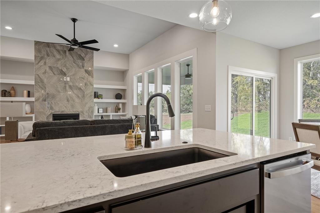 The Kendyl plan by New Mark Homes is a Reverse 1.5 story featuring 3 bdrms, 2 full and 1 half baths, 3 car garage. Home features an open & airy main level w/ Great Room, open dining & kitchen w/ gas cooktop. Spacious Master Suite w/ shower, large closet & office on main-level. Finished lower-level w/ large Rec Room, bar area, 2 secondary bdrms, full bath & tons of storage. HOME IS AT FINISH STAGE READY FOR A QUICK MOVE IN! Taxes are estimated. Lakeview Ridge is a new build community just west of Lake Olathe with great homes started and fantastic lots available. POOL coming in 2026/2027. You can get to the neighborhood off of Dennis & Houston with easy access from K7 or coming from Lakeshore. Our Sales Office is located 14271 Houston. Our development is right next to Lake Olathe and neighborhood feeds into Clearwater Creek Elementary, Oregon Trail Middle School and Olathe West High School.