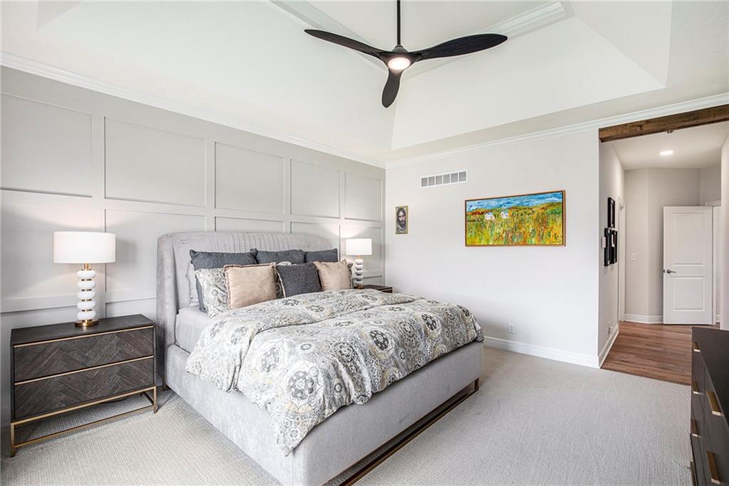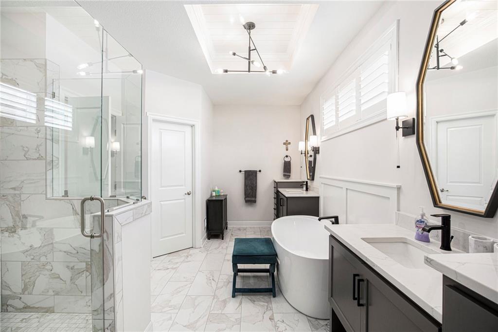 This gorgeous 5 bedroom 3.5 bath custom build at The Reserve at Woodside Ridge offers the perfect blend of modern luxury and comfortable living. Inside, the spacious and open floor plan invites natural light to flow throughout. The heart of the home is the well-appointed kitchen, boasting sleek countertops, premium appliances, and Butler's Pantry. It's a chef's delight! The main level also features a cozy living room, perfect for gatherings, and a dining area that leads to a covered deck, providing a delightful space for outdoor entertaining and relaxation. This reverse 1.5 story conveniently has a main floor primary bedroom and spa-like primary bath with a freestanding tub and his/hers vanities. A second bedroom on the main floor could also serve as a home office. Head downstairs to the finished lower level, where you'll discover a generous rec room perfect for guests, or quiet views out the floor to ceiling windows across the entire back. The wet bar area adds a touch of sophistication and convenience for your entertainment needs. The lower level opens to a walkout patio, with a lush spacious yard and brand new steel fence extending your indoor living space. This home is ideally situated in a desirable neighborhood, close to schools, parks, and shopping. The Reserve at Woodside Ridge offers a convenient location to highway access, shopping centers, and the Rock Island Trail. The amenities complex features: a club house, pool, pickleball court, hammock garden, and playground area. Don't miss your opportunity to be a part if this amazing community!