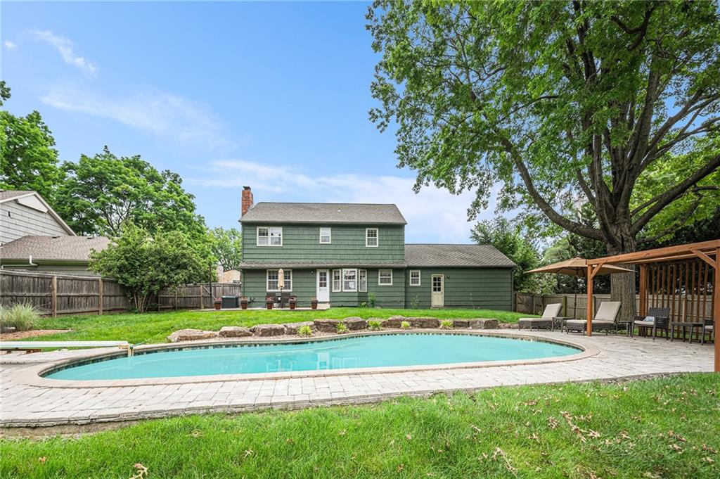 Motivated Seller - Bring and Offer! Cozy Fireplace for Winter, Pool for Summer. Wonderful opportunity to own this Prairie Village home in desirable Kenilworth subdivision - large living areas on the main floor include a living room off the entry, gorgeous great room with fireplace that walks out to the patio & pool, formal dining room and kitchen featuring newer silestone countertops, has peninsula with breakfast bar seating and dining area that looks out to the Salt Water Pool. 4 generously sized bedrooms upstairs. The private primary suite has its own bathroom with updated shower. The back yard have a wood fence and shrubs that give it lots of privacy. The finished basement adds even more living space, including a large recreation room, a non-conforming 5th bedroom, and a private half bath. Step outside to a beautifully landscaped, privacy fenced backyard with in-ground salt water pool, mature trees and a spacious patio perfect for relaxing and entertaining. 1st floor laundry, hardwood floors throughout, large finished basement w/new carpet Plenty of storage in the unfinished portion of the basement. Close to shopping and easy highway access. Located just a short walk from Meadowbrook Park and Franklin Park