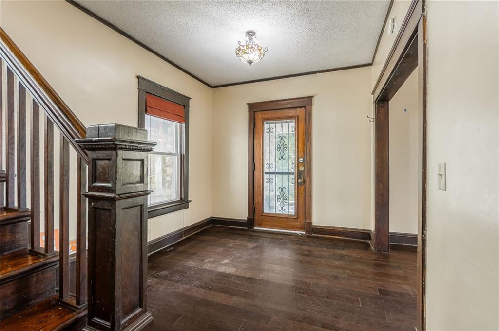 Tenant occupied until December 2026 $2300 per mth tenant paying all utilities on this Hyde Park home that blends historic character with modern convenience, nestled in the heart of Midtown Kansas City. With three full bathrooms—one on each floor, this spacious home offers flexibility for multi-generational living, guests, or work-from-home setups. Expansive covered stone front porch greeting, and enter to a warm interior filled with original woodwork, rich hardwood floors, and a stately staircase. The main level offers a cozy living room with fireplace, formal entry/sitting area, and a remodeled kitchen with granite countertops, white cabinetry, and stainless appliances. Upstairs, bright and airy bedrooms share a luxurious hall bath featuring marble-look tile and a vintage-style soaking tub. A second fully updated bathroom with a walk-in shower adds convenience. The finished third floor includes bonus living space and its own full bath—ideal for a home office, studio, or guest retreat. Please note: HVAC does not extend to the third floor.Enjoy outdoor living on the large back deck overlooking a fully fenced yard, perfect for entertaining, gardening, or relaxing. Located minutes from downtown, the Crossroads, and everything Midtown has to offer, this home offers the space and charm you've been looking for. Room for sweat equity, or move right in, 5 bedroom opportunity, and primary suite expansion. Buyer and Buyer's Agent to verify all taxes, square footage, and information pertaining to the property.