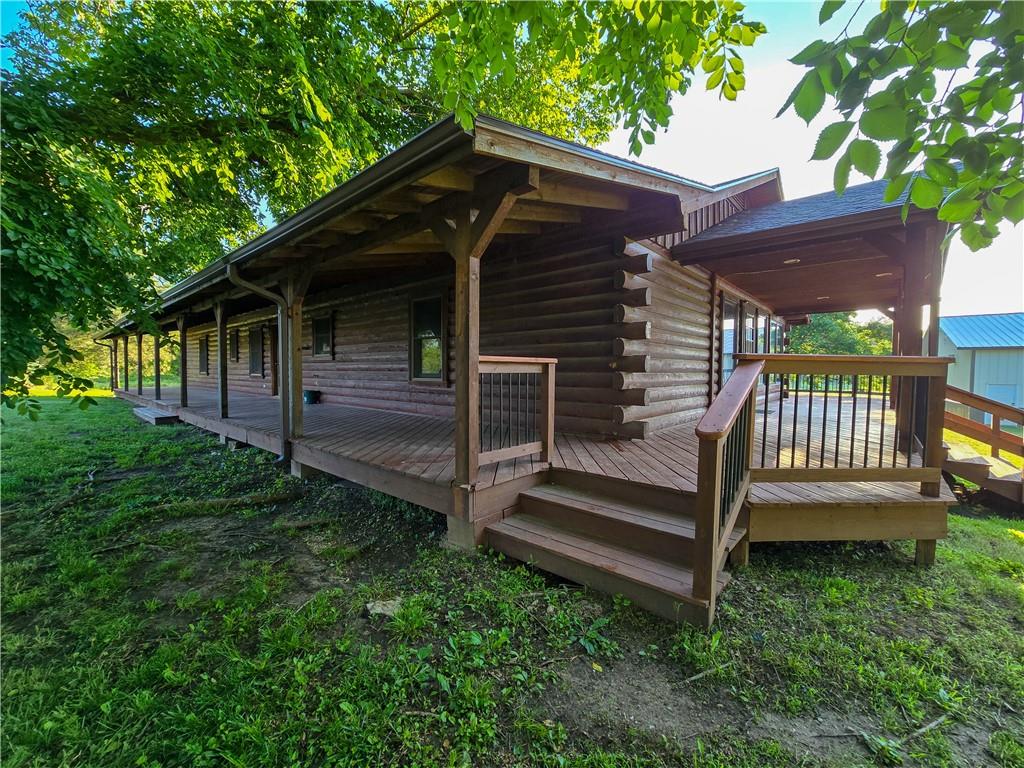 The Flint Hills are a special place, and this ranch provides the perfect setting to experience it firsthand. Sitting at the end of a long driveway, this Satterwhite Log Home is nestled in the heart of the surrounding acreage, which consists of hay meadows, native pasture, and nearly a half mile of Collett Creek with excellent hunting. A wooden wraparound porch that flows on three sides of the home. The house features two large living rooms, one with a propane fireplace and one with a traditional wood-burning fireplace. The master bedroom features an electric fireplace, two closets, and its own master bathroom. Two additional bedrooms and one bathroom provide plenty of room for family members or guests. The home features new carpet in all of the bedrooms and the living room and new vinyl flooring in the pantry and utility rooms. The farmstead includes a fully insulated Morton building that is heated and cooled by four mini-split units, resulting in supreme comfort. The shed provides a great work environment for a small business, tinkering on personal projects, or enjoying as a place to hang out. The horse barn features six 12x12' horse stalls with automatic waterers, and a separate area for tack, hay storage, and vet supplies. A covered riding area can be utilized to train horses and enjoy riding when Mother Nature doesn't cooperate. The surrounding terrain provides a picturesque place to leisurely trail ride as well as ample room to add an outdoor arena. The flint hills region in Kansas is home to world-class whitetail deer who call this farm home year-round. During the rut, there is no telling what may show up as bucks cruise in search of the next hot doe. As mentioned at the start, this farm offers something for everyone from the avid whitetail deer hunter to the equestrian. Farms in this area don't hit the market often, contact the listing agent today to schedule a showing! *Acreage is also listed under Heartland MLS #2580003 and #2580008