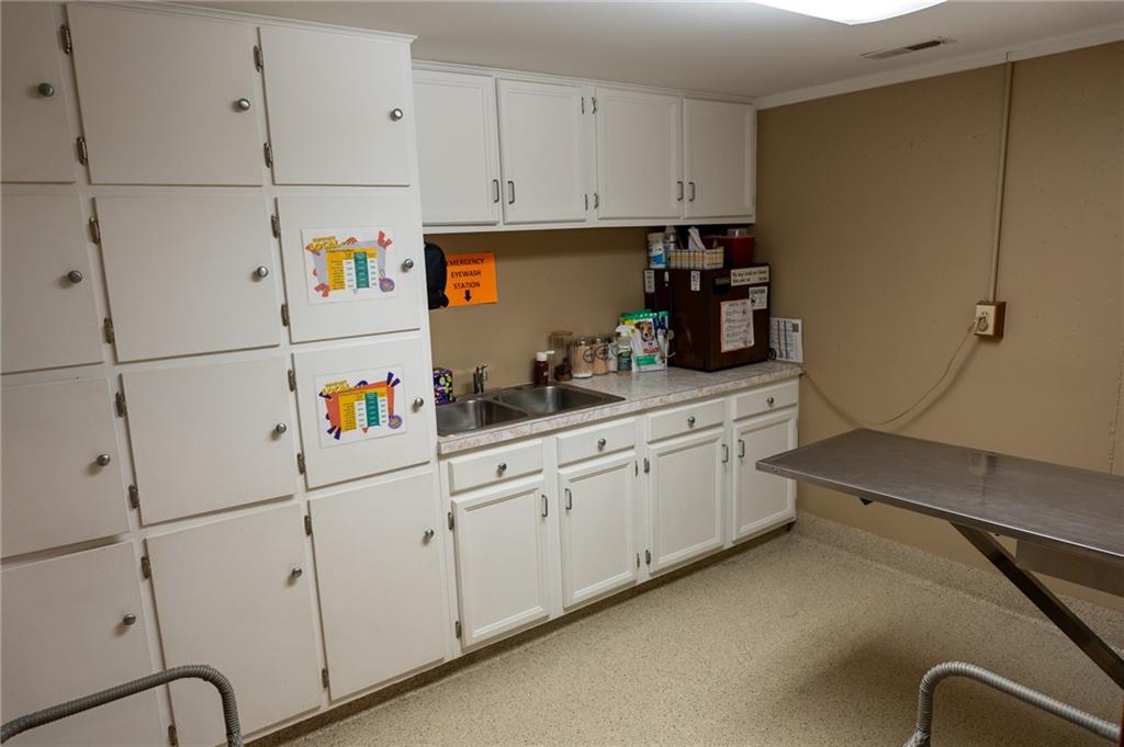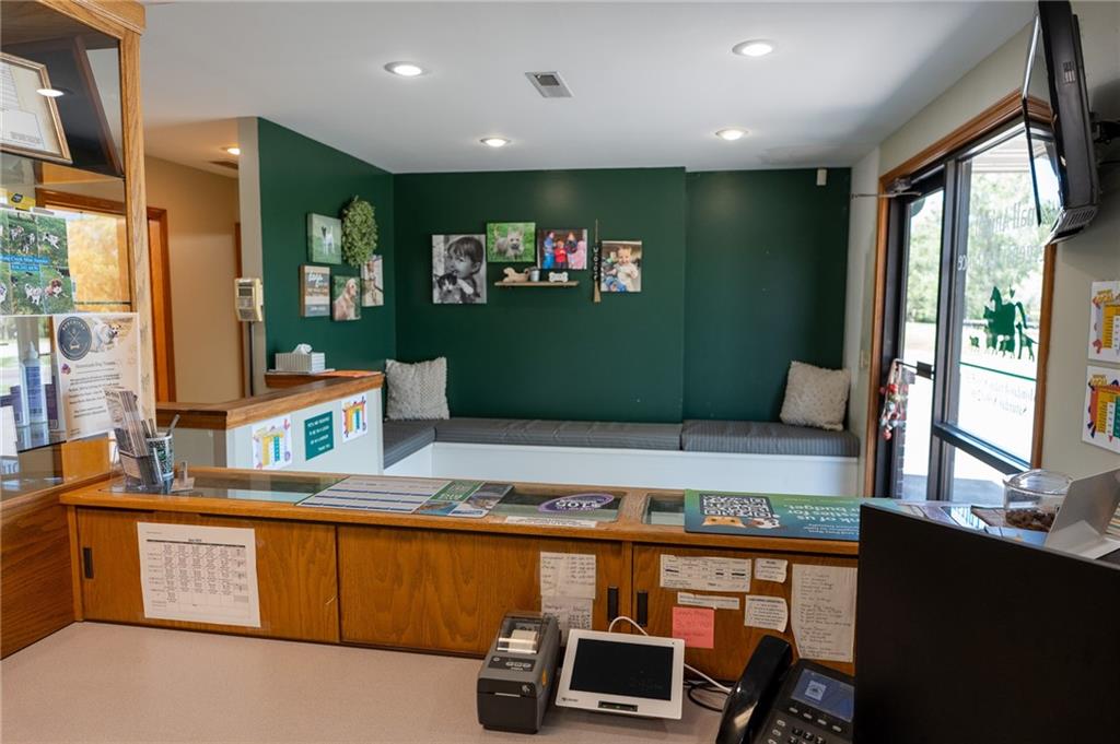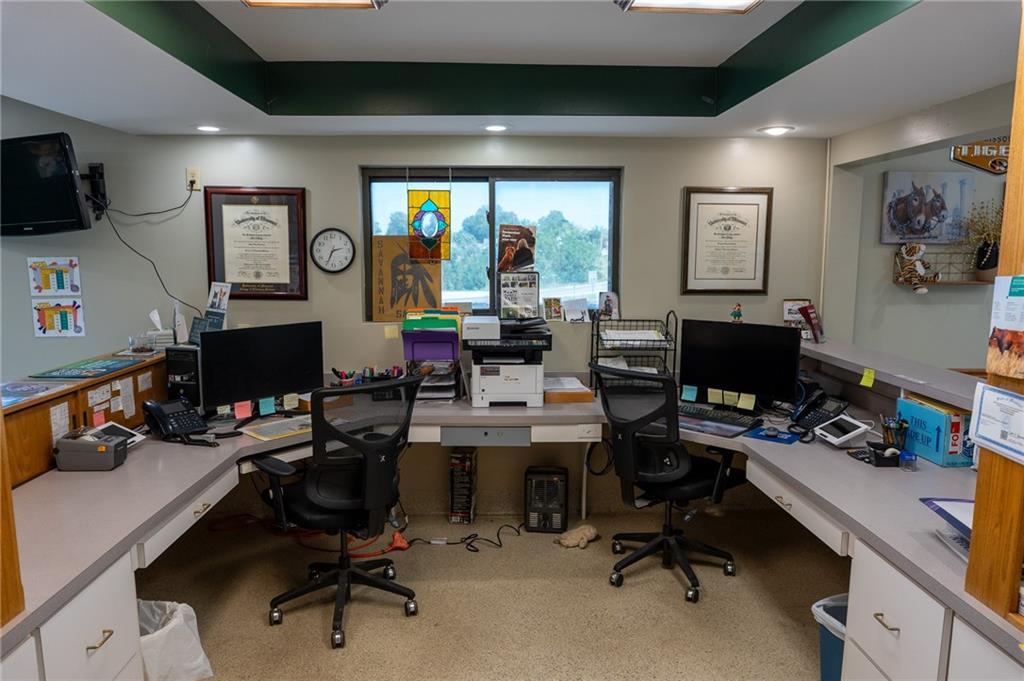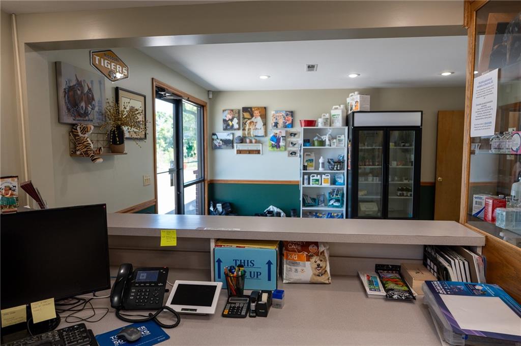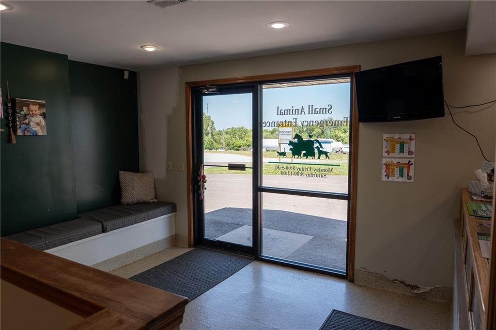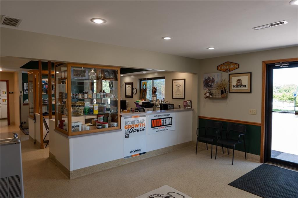 Here's an opportunity to Purchase ( at appraised value) an establish large building located in a growing area of Savannah with acreage. Right on Business loop of US 71 Highway north. Lots of Square footage for any type of business (that you desire). Paved-marked parking lot for at least 13 spaces. Open and light ; reception area )Dual entry plus dual receptions with counters and office space. You can have numerous chairs in this reception area. Also, Private large office ; three smaller private office spaces; laundry room; Storage room; Break Room ; and a gathering area for staff . The opportunities for this building is endless. Added building to the south of the main building is open but covered- garage -storage- could even rent or use as an investment opportunity. Currently a very successful Veterinary business with a history of lots of traffic. Signage is also available along highway. We are looking to create a vibrant and diverse environment for our property. Whether your considering opening a New business-beauty shop- medical facility-boutique-fix it job-accounting office- investor-or a gathering spot, take the time to look and just think of the possibilities.