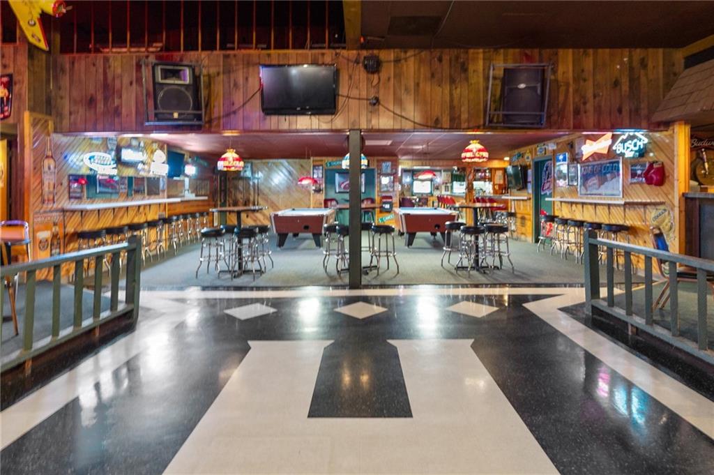 Here's a great economic opportunity to purchase this established, well known business property, running for 40 years. Facility seats an estimated 225 and is approximately 5,900 sq. ft. that includes large bar, dance floor, 2 pool room/areas to accommodate 3 pool tables, large dance floor with lots of seating, walk in cooler, ice/storage room, office area with separate bathroom, 2nd level apartment that needs TLC, and large garage/storage area with roll up door. There is ample parking adjacent to the building and an additional 2 lots directly across the street for any needed extra (approx. 36,000 sq ft.).