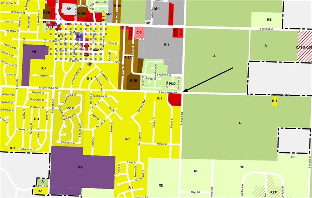 6 vacant acres zoned C2 commercial at the intersection of J Hwy and Lucy Webb roads. High traffic counts. Do not drive on land please.