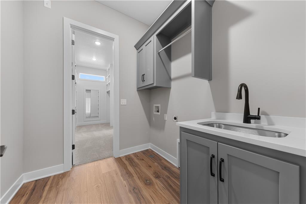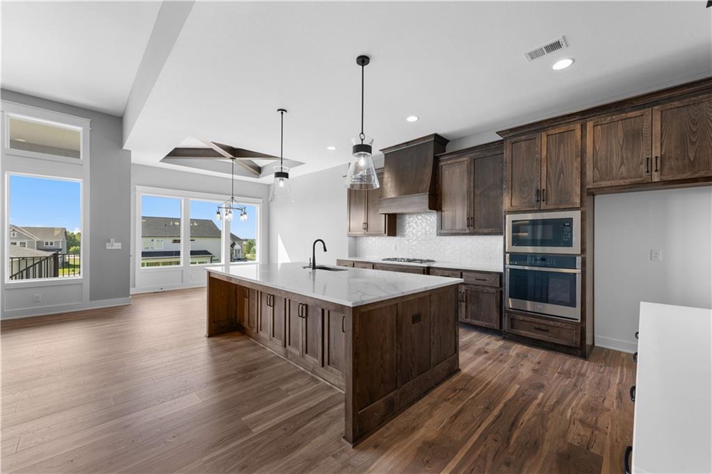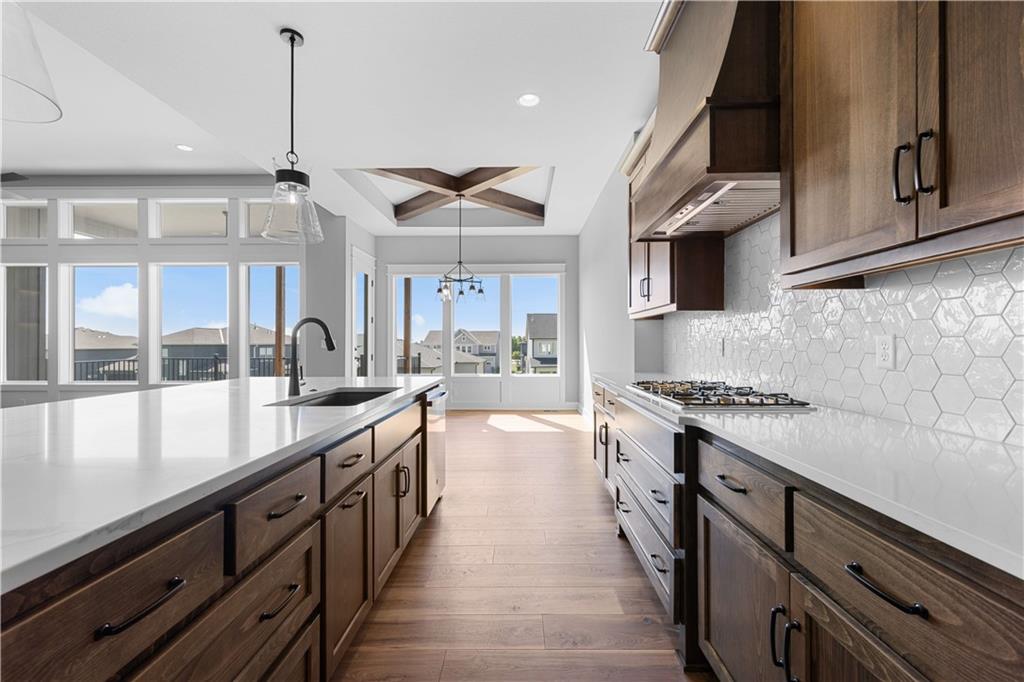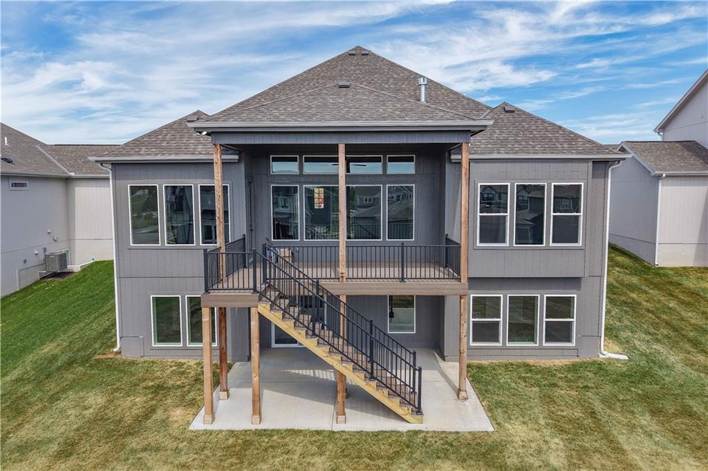 MOVE IN READY! Welcome home to the WINDSOR by Inspired Homes, a Reverse 1.5 Story that boasts over 3,500 SF and is situated on one of the communities FEW WALKOUT LOTS! As you enter the home, you'll be greeted with a large kitchen featuring stained cabinetry and an oversized 10-foot island, creating the perfect entertainer's space. This home also includes a huge low maintenance, covered deck with aluminum rails, composite decking & stairs leading down to a lower patio. Designer options for this home feature a full basement wet bar, wood trim ceiling & wall details, upgraded lighting, upgraded quartz countertops, built-in cabinets & shelving in great room, an additional fireplace in the basement, direct access to laundry room from the primary closet, and a HUGE walk-in pantry! This home includes extra deep garages, 8’ garage & front doors, irrigation systems, HVAC humidifier, garage openers and gas cooking with built in SS GE Profile appliances, low-e Pella windows and doors, custom wood cabinetry, tray ceilings, and so much more! Located in the highly sought-after Pryor Ridge neighborhood in Lee's Summit, this property offers a lifestyle characterized by both comfort and convenience. Residents can indulge in community amenities including a junior-competition sized swimming pool and sun cabanas, a large playground, pickle ball and basketball courts, an off-leash dog park, local walking trails, and expanses of green space to enjoy. Notably, shopping destinations and restaurants are just minutes away, providing homeowners with the opportunity to enjoy the charm of a countryside atmosphere while benefiting from the practicality of urban living right in Pryor Ridge. ***BUY WITH PEACE OF MIND, the convenience of new construction backed by a 2-10 Home Warranty, offering 10 year structural, 2 year mechanical, 1 year workmanship PLUS in house warranty representative! Photos are of actual home.
