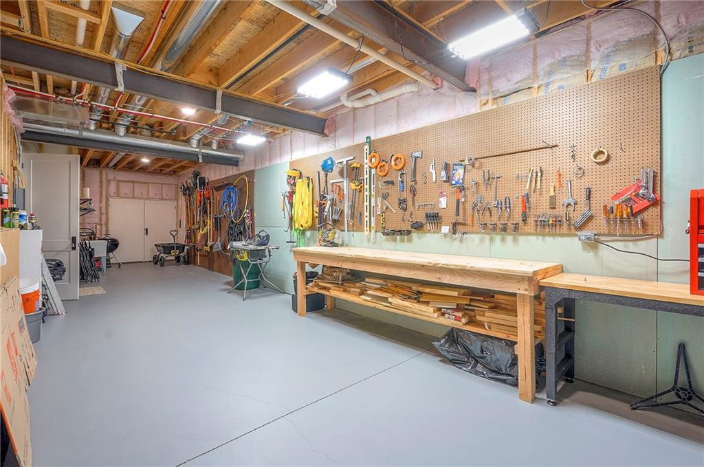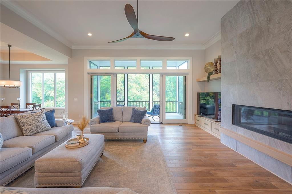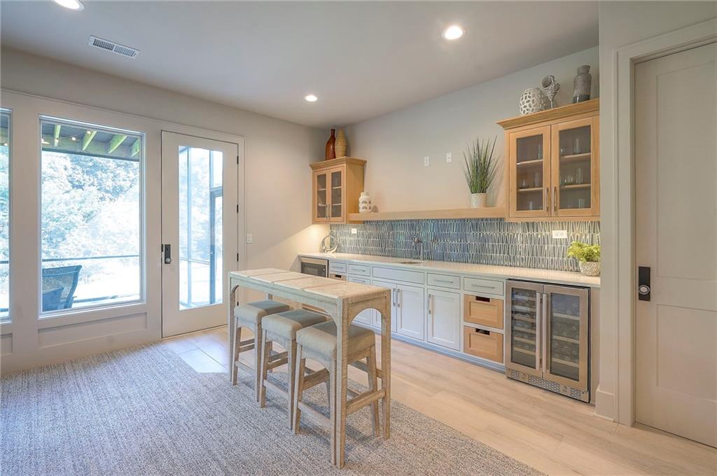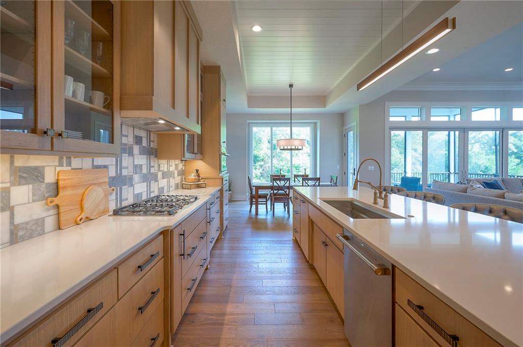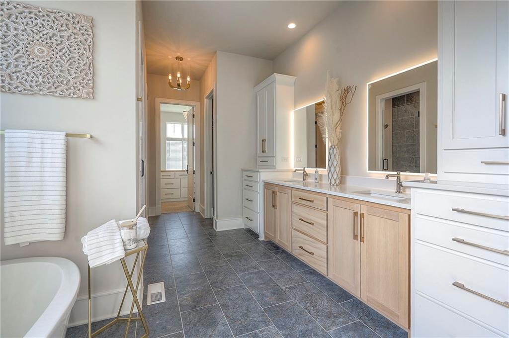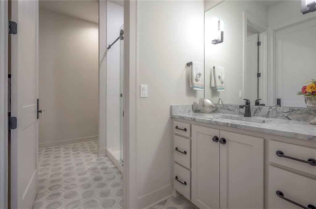 Step into this stunning custom Homes by Chris residence, beautifully landscaped and featuring a charming front porch that warmly welcomes you home. Nestled against serene woods and a protected stream, this property offers the perfect blend of privacy and nature. Inside, you'll find an open-concept layout filled with natural light. The spacious kitchen boasts a large island, ample cabinetry, a breakfast room, and a butler’s pantry complete with a beverage center and additional counter space—ideal for entertaining. The luxurious main-floor primary suite features a statement wall, spa-like bath with backlit mirrors, a relaxing soaker tub, and a show-stopping walk-in closet with built-ins, a center island, and a dedicated makeup vanity. The finished lower level includes two additional bedrooms, a rec room with a full wet bar, and an expansive workshop with sealed floors, motion-sensor lighting, and double-door walkout access to the backyard. Whether you're sipping coffee on the screened-in deck or unwinding on the covered porch, you'll love the peaceful backdrop of mature trees and flowing stream. A true retreat with every detail thoughtfully designed.