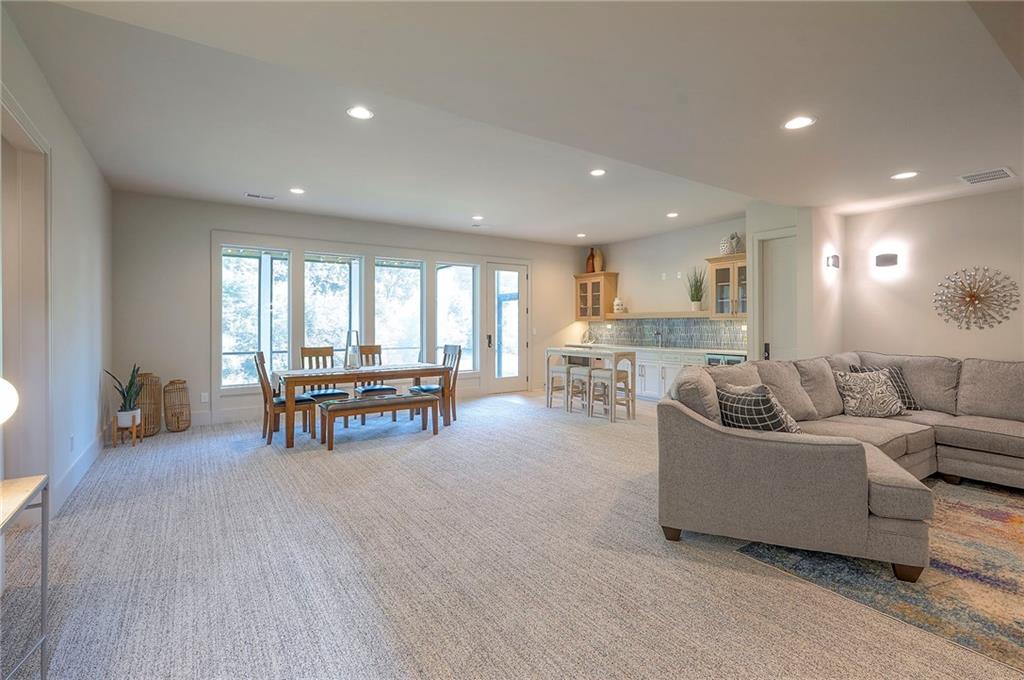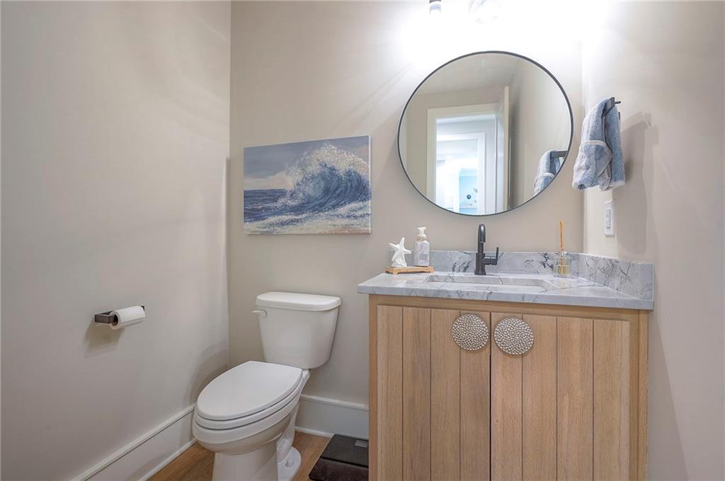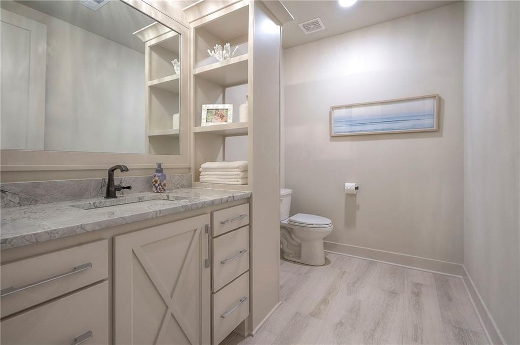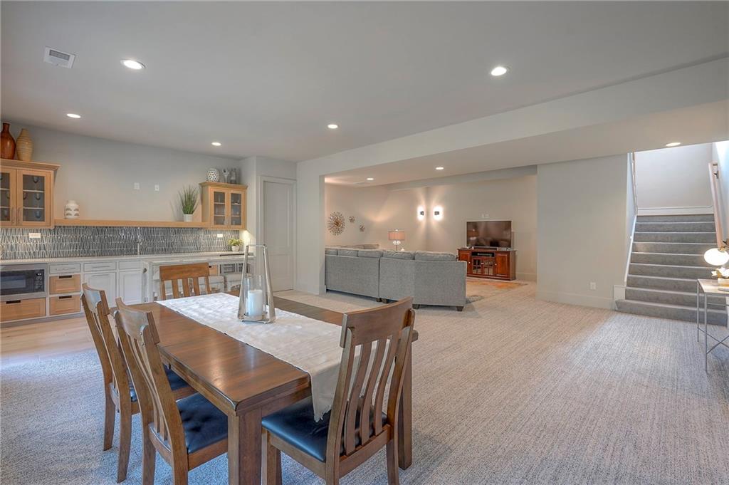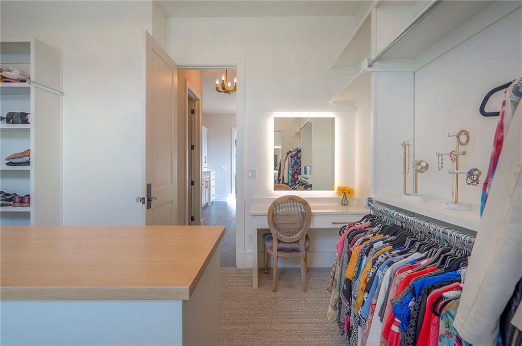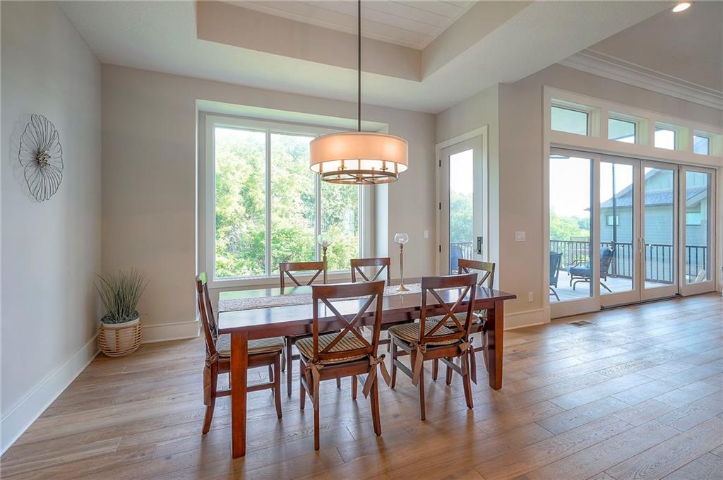Step into this stunning custom Homes by Chris residence, beautifully landscaped and featuring a charming front porch that warmly welcomes you home. Nestled against serene woods and a protected stream, this property offers the perfect blend of privacy and nature. Inside, you'll find an open-concept layout filled with natural light. The spacious kitchen boasts a large island, ample cabinetry, a breakfast room, and a butler’s pantry complete with a beverage center and additional counter space—ideal for entertaining. The luxurious main-floor primary suite features a statement wall, spa-like bath with backlit mirrors, a relaxing soaker tub, and a show-stopping walk-in closet with built-ins, a center island, and a dedicated makeup vanity. The finished lower level includes two additional bedrooms, a rec room with a full wet bar, and an expansive workshop with sealed floors, motion-sensor lighting, and double-door walkout access to the backyard. Whether you're sipping coffee on the screened-in deck or unwinding on the covered porch, you'll love the peaceful backdrop of mature trees and flowing stream. A true retreat with every detail thoughtfully designed.