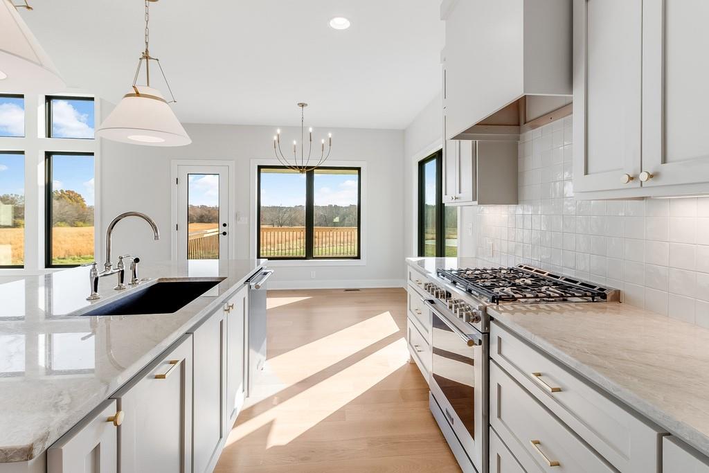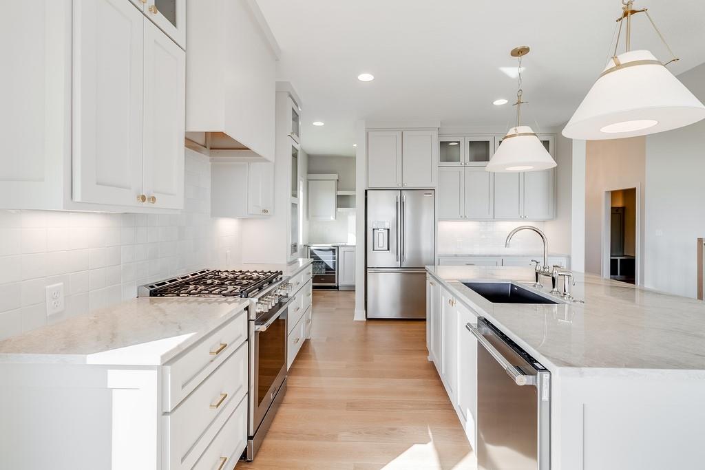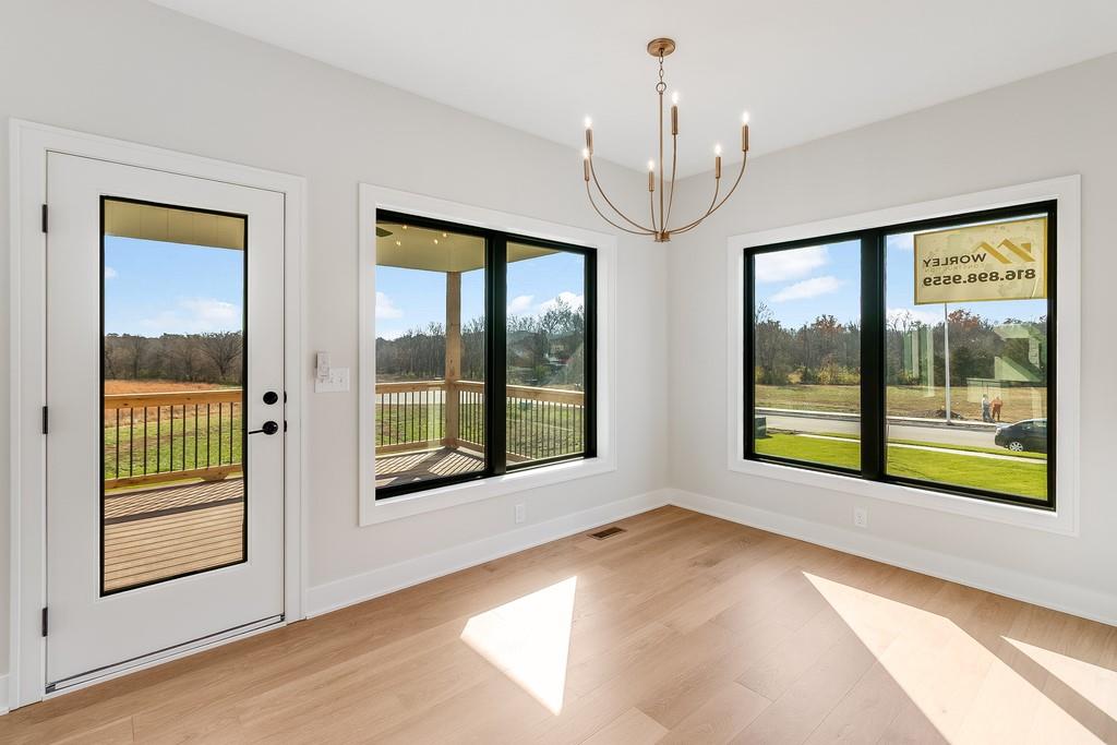 Discover the perfect blend of luxury, function, and craftsmanship in this stunning reverse 1.5-story home by Worley Construction, located on a spacious 1/2-acre lot in The Estates at Knoll Creek—a premier Raymore community with a walking trail and a neighborhood fishing pond. This thoughtfully designed home offers 4 bedrooms, 3 bathrooms, and 2,787 finished square feet filled with custom finishes and quality materials. The open-concept main level features hardwood floors, a spacious great room with a stone fireplace, and a gourmet kitchen with quartz countertops, custom cabinetry, a walk-in prep pantry, and a wood vent hood. The primary suite includes a spa-like bath with a walk-in tiled shower, dual vanities, and a generous walk-in closet that connects directly to the laundry room. The finished walkout lower level adds two more bedrooms, a full bath, a large rec room with a full wet bar, and a rare bonus: a basement garage bay—ideal for storing lawn equipment, tools, or creating the perfect workshop or hobby space. Enjoy outdoor living on the covered composite deck overlooking the treed green space. With upscale design, flexible living spaces, and a quiet, scenic neighborhood, this home offers the lifestyle today’s buyers are looking for.