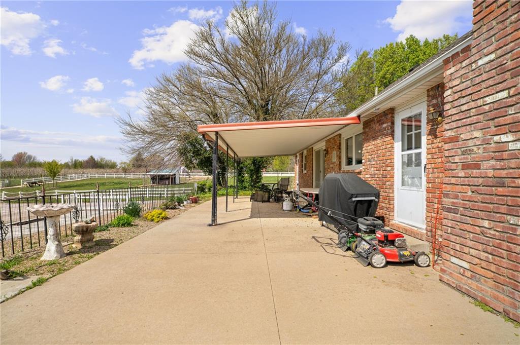 All-brick ranch on 7+ acres in Lee’s Summit Schools—set up for hobby or regenerative farming. Previously part of a larger offering with the orchard/berry patch, now available separately. Thoughtfully arranged for animals with 18 fenced pens for chickens, goats, sheep, or alpaca, plus multiple outbuildings and a covered patio overlooking pasture. Inside: formal living and dining, a main-floor family room with fireplace, and a country kitchen with ceramic tile, breakfast bar, and center island. Three full baths. Enormous, ready-to-finish basement to double your living space, storage, or workshop potential. Just 1 mile to 7 Hwy—privacy without sacrificing convenience. Adjacent 31 acres is available.