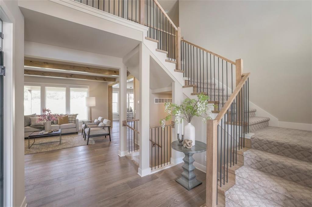 This stunning 2 story, is the Sullivan II by SAB Homes. The main floor is bright and welcoming, featuring ample amounts of cooking, prepping and storage space in the kitchen including a walk in pantry. A main floor bedroom or study privately located behind the kitchen area. This plan features a true dinning room with a bonus breakfast area in the kitchen as well. In the upstairs you'll find a large primary suite, with a large en-suite including features like a free-standing tub, large walk-in shower with two shower heads, dual sinks, toilet room and a large walk in closet. Upstairs you'll find 3 additional bedrooms, one with its own private bathroom, the other two featuring a "Jack and Jill" bathroom. Basement stubbed for bathroom and agree window well with the potential to add an additional bedroom. 14'x12' covered patio off great room and breakfast area. End of November estimated closing date. All in the coveted Heritage Ranch, A Lambie-Rieke Community, with Amenities Galore such as state-of-the-art pool, clubhouse, trails, pickleball, play area, half-court basketball, ponds and so much more coming soon! This community provides a wonderful lifestyle and right next to the 1,238 Acre Heritage Park with Dog Park, Sports Parks, Golf, Lake, Trails and so much more! Contact Onsite Agents for Estimated Completion of homes on site, and design selections. Our welcome center is now open, located at LOT 65. Open 7 days a week! Renderings &/or images may show features that are subject to change. Sq Ft & Taxes are estimated. Home is under construction. LOT 6. Welcome Home to Heritage Ranch - one of the last NEW Home Communities in Johnson County!