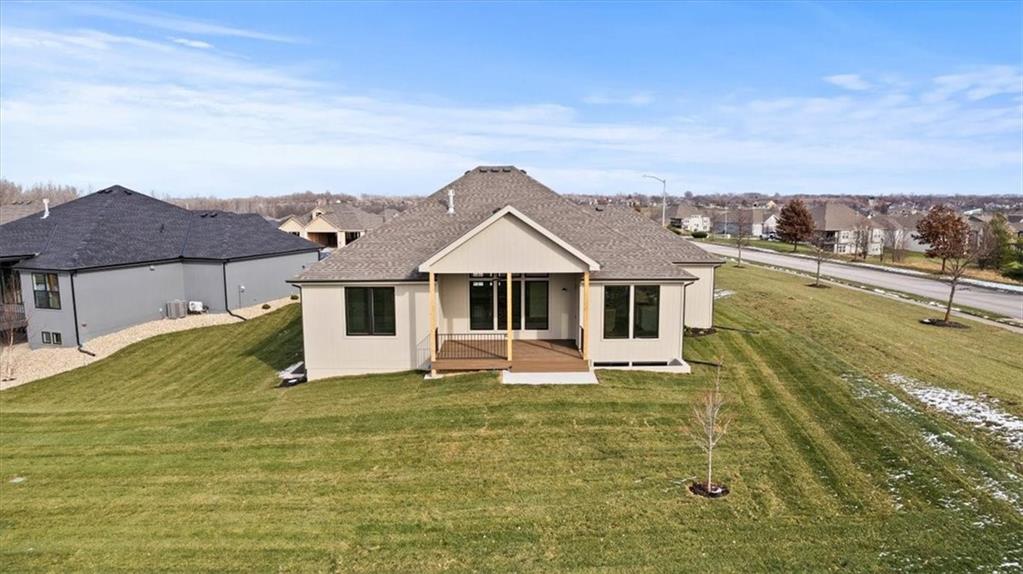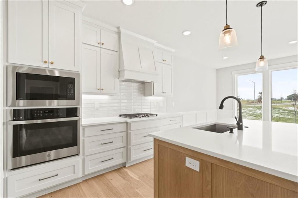 Lot 44 Villa - The Lexington by Pfannes Homes! GOLF COURSE LIVING in this open Reverse plan. This lovely home with ALL THE UPGRADES is READY for you!! Spacious Great Room includes fireplace with tile to the ceiling, cabinets on one side, and large windows with transoms above. The Kitchen has a nice Island, walk in pantry, quartz and drawers for convenient access to kitchen essentials. The Dining Area includes wainscoting and has access to the covered COMPOSITE deck. The large Main floor Primary Bedroom has a beautiful feature wall. Primary Bath Suite includes standalone tub and ZERO ENTRY walk-in shower. Laundry Room has access off the Primary Bedroom closet! Main floor 2nd Bedroom and 2nd Bathroom. Large finished Family Room in the lower level with nice wet bar as well as the 3rd and 4th Bedrooms and 3rd full bath. Plenty of storage room, including basement under the entire front stoop and porch. 3 Car Garage with tandem area on the 3rd garage bay perfect for the golf cart or workshop area. Minisplit installed in garage to keep it a comfortable temperature year round! This great home is on the end of the cul-de-sac with a view of the golf course across the street! Just 10 minutes to the Legends shopping and entertainment and 30 minutes to the airport, Falcon Lakes is conveniently located on K-7 for easy highway access. Acclaimed Basehor-Linwood Schools. Monthly HOA dues provide lawn maintenance including weed and feed and sprinkler turn on and off as well as snow removal over 2 inches. Neighborhood Restaurant at the golf course club house!