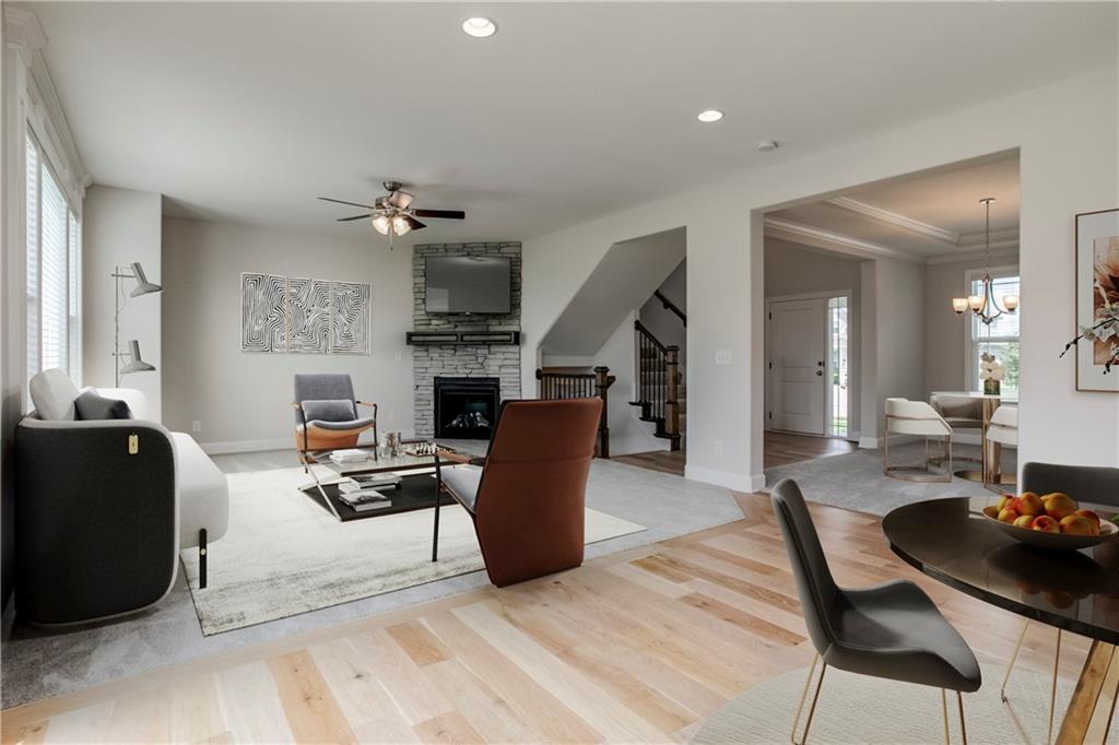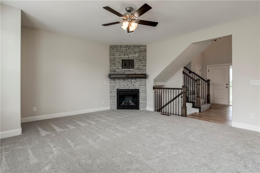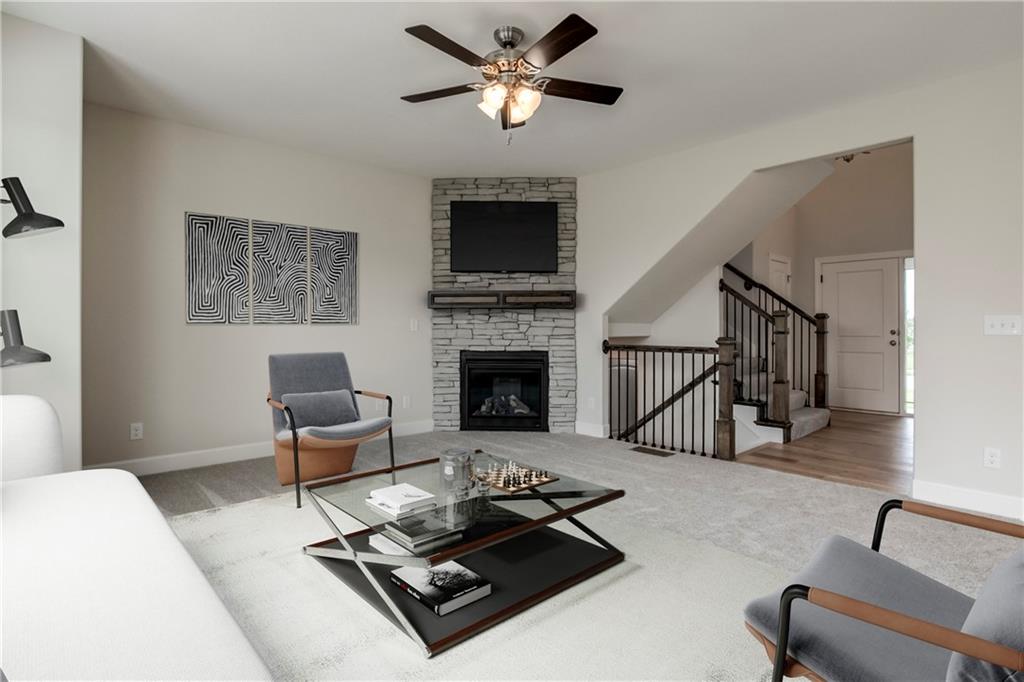 NEWLY STAGED MODEL home. One of the last 3 completed new homes available in this phase! Final phase of COPPER SPRINGS III Subdivision! Additional UPGRADES include a sprinkler system, full-height stone fireplace, Enamel kitchen cabinets with additional kitchen cabinets and island top extension, top-control quiet series dishwasher, stone-wrapped garage door elevation upgrade on 2-car area, and upgraded front porch. LED color-changeable lighted vault in the master bedroom, and the secondary bedrooms are pre-wired for future ceiling fans. Quartz kitchen countertops, jetted-master tub, garage door openers for both doors, keypad, and painted garage interior walls. 8lb pad under all carpet, R-49 attic insulation, insulated garage walls and door, 2-inch Faux wood blinds as shown. Towel bars and rings are included. Stone-look vanity tops, large shower tiles, a framed mirror in the half-bath, and a master bath. Taxes figured from the last tax bill. No Special Assessment Taxes in Copper Springs! HOA amenities include a heated pool with a slide and splash zone, and extended pool season if the weather cooperates! SQFT and taxes are estimated! Note: digitally staged photos included. Some Features have changed since the time of the photos (new photos coming soon)