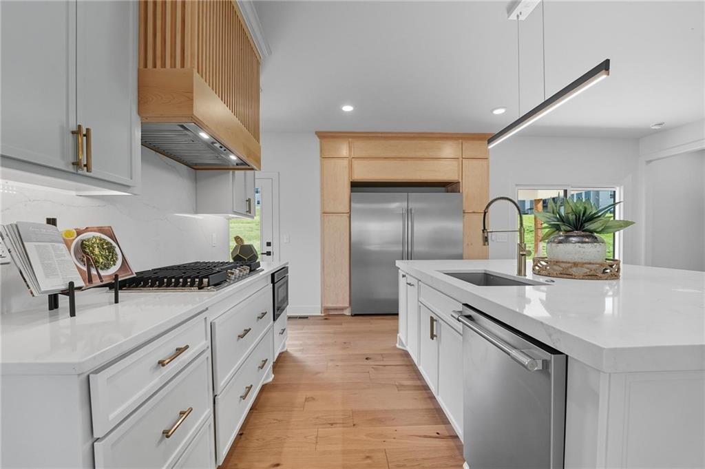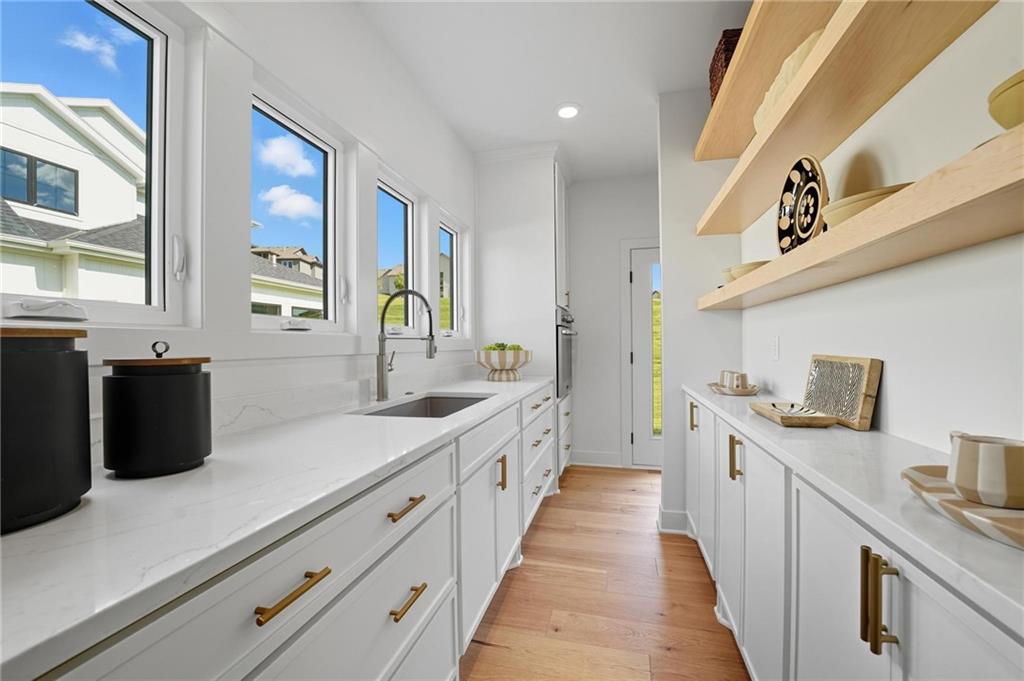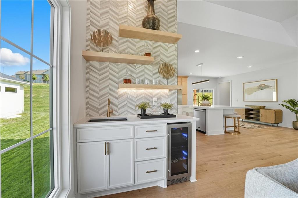Exceptional New Floor Plan in Parkville's Premier Golf Community! Experience luxury living as you enter through elegant double glass front doors and explore this stunning home featuring designer lighting and warm hickory flooring throughout. The spacious open great room, complete with a wet bar and glass French doors to the home office, creates an ideal blend of privacy and natural light for your home office needs. The gourmet kitchen is a chef's dream, showcasing a full walk-through butler's pantry adorned with windows, open shelving, a prep sink, and ample space for meal preparation. The main kitchen area boasts a full-sized refrigerator and separate freezer, beautifully framed by floor-to-ceiling stained maple cabinetry. Retreat to the lavish master suite, where a serene sitting area leads into a magnificent master bath featuring custom cabinetry, a vanity area, a soaking tub, and a luxurious tiled shower with dual shower heads, all enveloped in elegant floor-to-ceiling tile. The thoughtfully designed master closet accommodates both his and her needs. Convenience is key with a connected laundry room equipped with a folding area and sink, completing the main level. The second floor offers a spacious loft, perfect for gaming and movie nights, while each generously sized bedroom includes walk-in closets and private baths, making it ideal for families and guests alike. Located on a quiet cul-de-sac in a sought-after golf and golf cart community, this home is one of the last new constructions available! Enjoy easy access to the subdivision pool, play area, and exclusive amenities with a social and/or golf club membership to The National. Park Hill South High School, Great location to Parkville, Kansas City Kansas & Downtown Kansas City Missouri, Creekside Shopping Area, and 12 minutes from The Legends featuring shopping, casino, sports and entertainment!