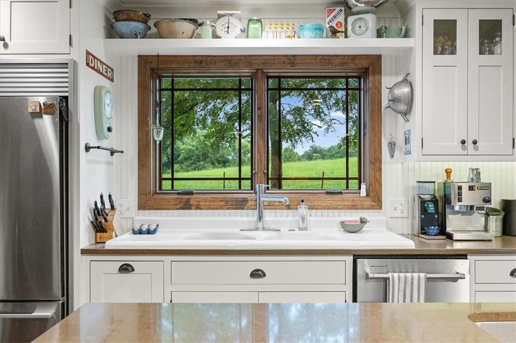 New Price - $775,000! Welcome to an exquisite country retreat that offers a blend of modern comfort with serene country living.  It is a beautiful 1.5 story home nestled on 8+ acres that backs up to an open field and is surrounded by oak, maple, and walnut trees. The home is set back from the road so it feels very private. In the spring, red beds bloom along the private drive to the house. While only minutes from city amenities and nearby schools, it really feels like a private oasis.  The heart of the home is the enclosed sun room with large picture windows that invite the natural surroundings inside.  It is the place to enjoy the changing seasons and the wildlife year round. Nearby, the well designed kitchen flows seamlessly and makes preparing meals so easy.  Your guests will enjoy visiting with you as they sit around the spacious kitchen island as you entertain.  You will love gazing out the window or reading a book in the window seat. Thoughtfully tucked away, the primary bedroom has an ensuite bathroom, sitting area, walk in closet and private access to the outside.  The home has 4 bedrooms and 3.5 bathrooms so there is extra room for guests.  The finished basement has a recreation room, a bathroom and an additional storage room. Outside is a 30X40 outbuilding with a concrete floor, electricity and electric garage doors.  It is perfect for hobbyists, those needing a workshop, or just someplace to park a rv, boat, atvs and farm equipment. End the day watching the sun set or looking at a sky full of stars from the hot tub or while reclining on the deck.  Once you visit this one of a kind country estate, you'll want to call it your new home. ** Buyers and agents are to verify measurements, square footage and tax information.
