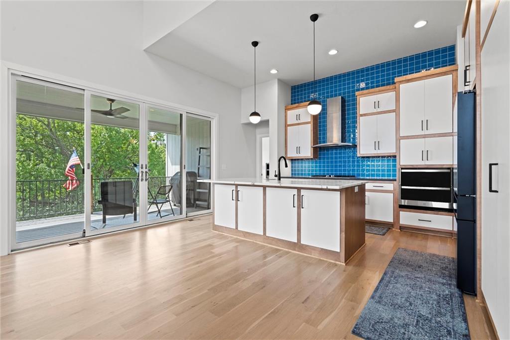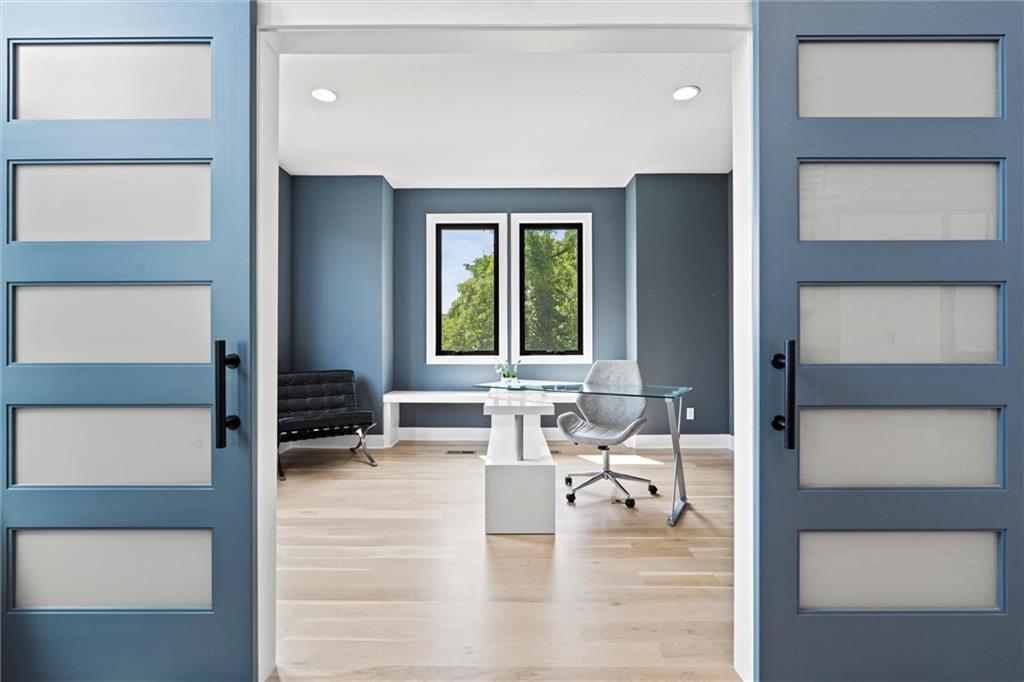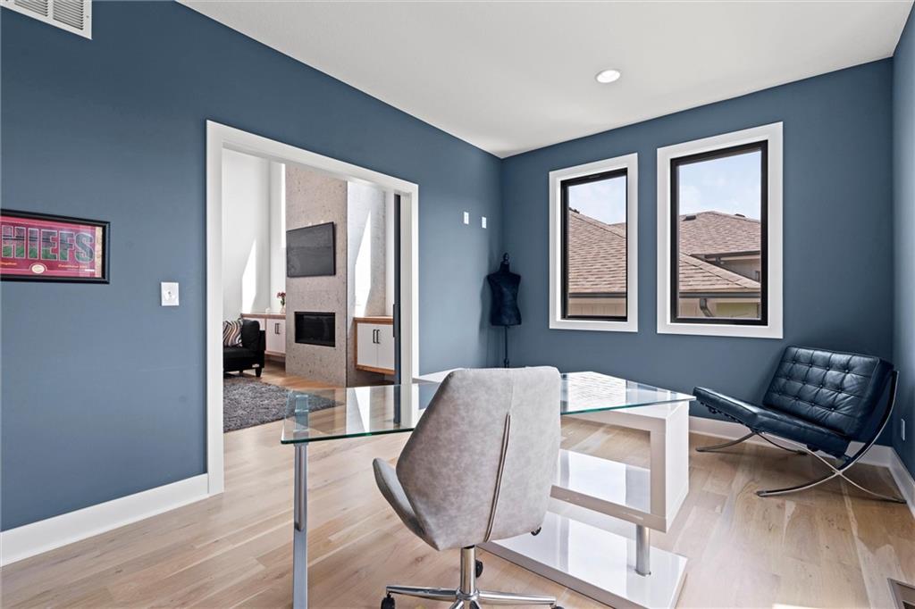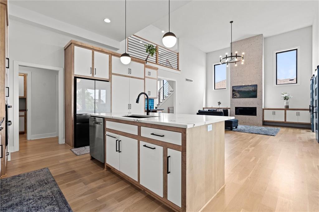 No need to wait for a new build, this home is even better! This property offers an open floor plan with white oak wood floors throughout the main living area and has large windows galore + glass doors that flood the space with natural light. The kitchen is equipped quartz countertops, hand crafted maple cabinets, gas cooktop, double ovens, built in office station, oversized butler pantry (must see), stainless steel appliances, oversized island, and a private breakfast/coffee bar. Great room with soaring ceilings, and fireplace. The main level office/den is the perfect touch! Spa like Master suite with bathroom that has a standing tub inside the ginormous walk-in shower w/dual showerheads, and a HUGE walk-in closet with direct access laundry. Second level has 3 spacious bedrooms, 2 full bathrooms, amazing loft area, and second laundry. The walkout basement is very large, stubbed for a full bathroom, and ready for your special touches! There are covered decks on the main level and lower level overlooking a greenspace with walking trail. Coming soon!!! Top of the line amenities featuring swimming pool, mini golf, sports courts and more! In the meantime, you are steps away from Black Hoof Park that offers an array of lovely amenities such as boat rentals, fishing, playgrounds and beautiful scenery to relax and enjoy! This home has tons of smart features such as app-controlled lights, garage door opener, thermostat, and ceiling fans! The Anderson Diamond energy efficient windows put a bow on this gorgeous home with very high efficiency and very low utility bills! Just minutes away from Lenexa City Center that has shopping, restaurants, and lots of fun activities for everyone! Also, located in Olathe Schools where you can guarantee one of the finest educations in KC! The HOA dues include mowing, and snow removal making this so convenient for busy lifestyles! Come see this beautiful home and fall in love!
