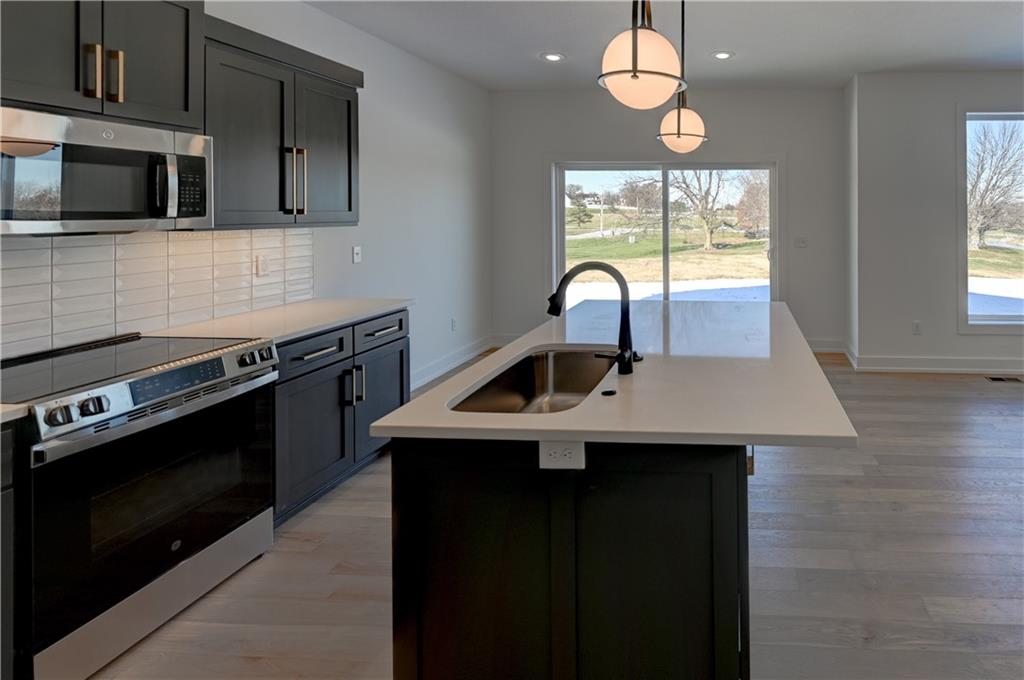 UNDER 500k -DELIVERY IN 30 DAYS BEST LOCATION ! NEW SINGLE FAMILY NEW CONSTRUCTION! FABOULOUS LOCATION, SERVICE PROVIDED (LAWN AND SNOW CARE) This new -spacious split level residence featuring main level living w/ 3 bedrooms/2 baths, and laundry room on an oversized beautiful lot overlooking large greenspace and pond. Open floor plan with lots of glass pouring into the kitchen, dining, and greatroom! Fabulous master suite, private bath w/ shower, double vanity & spacious closet. Two other bedrooms on main level & full bath. Secondary living area in the lower level that spans 30'x15' with an additional bedroom/closet in LL w/ 3/4 bath. 2 car garage. Short distance to all services, airport, and highways.