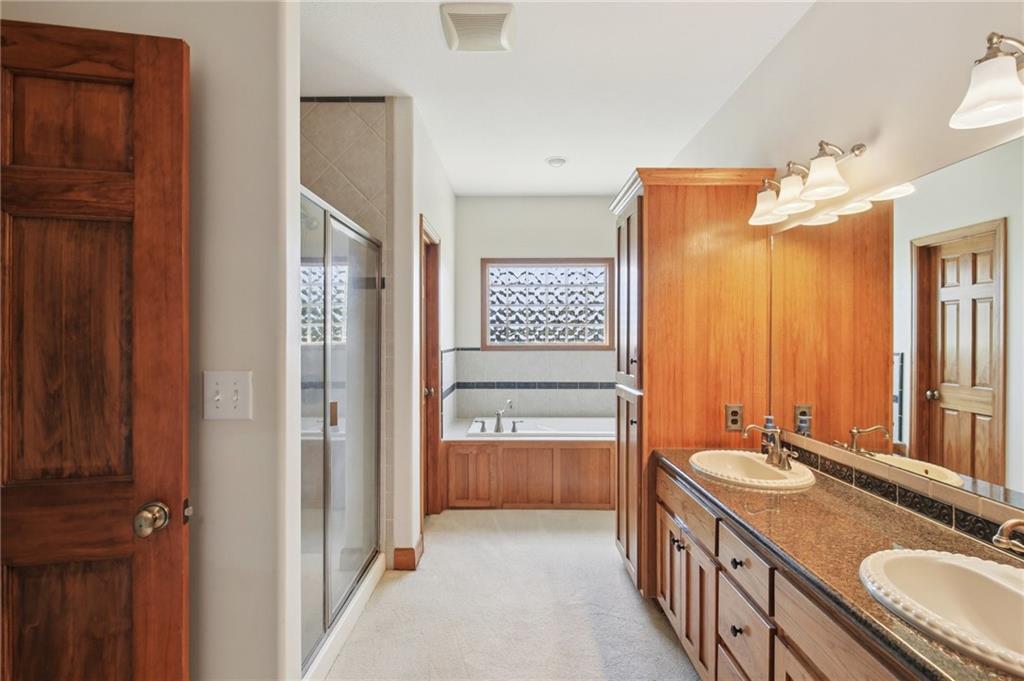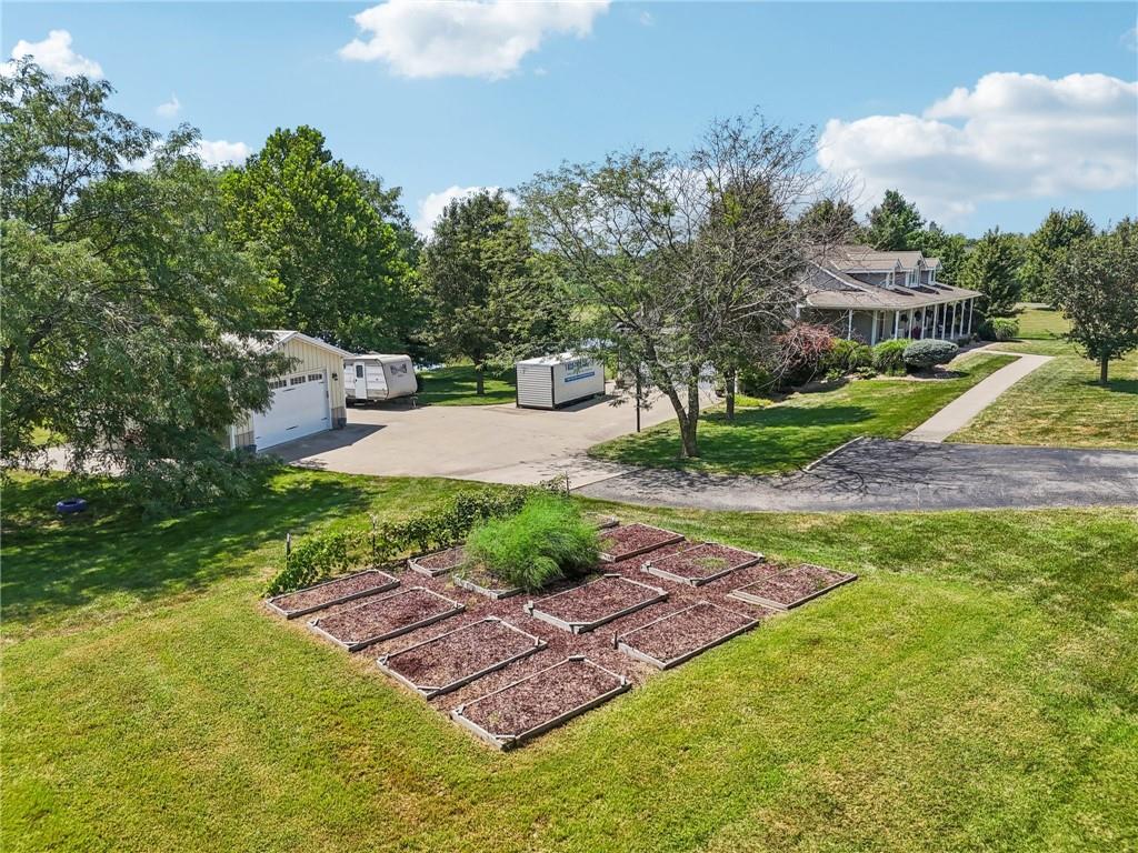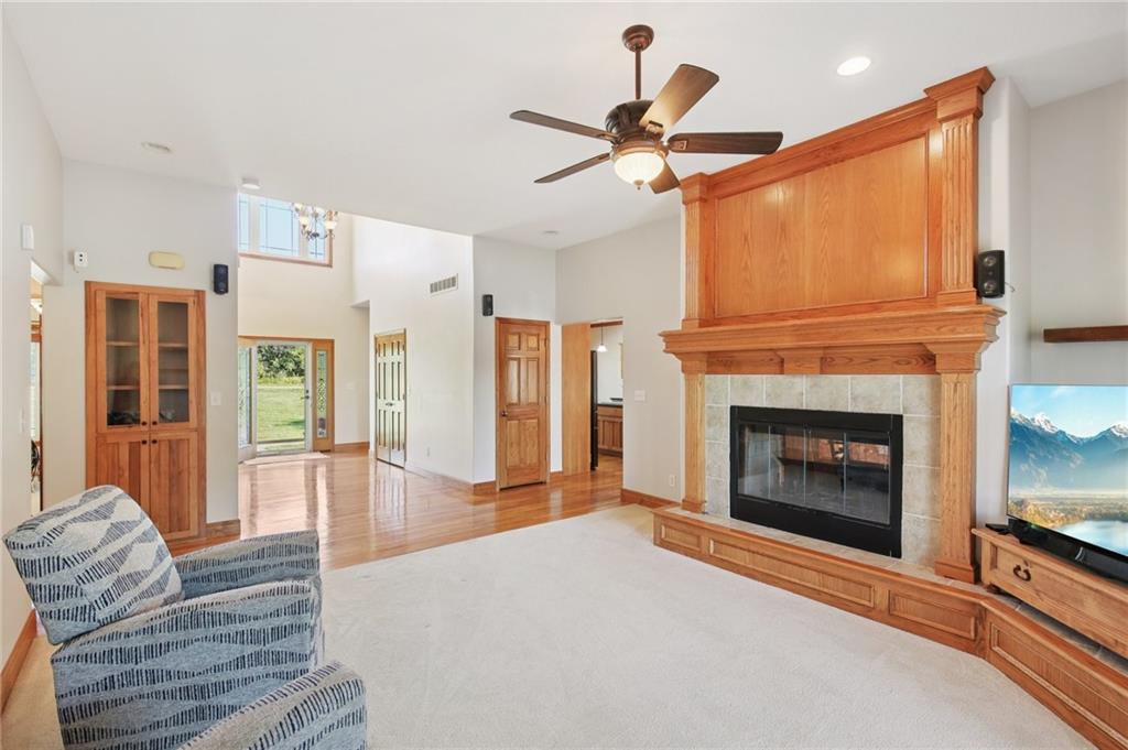 This stunning home is designed for both comfort and entertainment, set on a generous almost 3 acre lot that offers plenty of space for outdoor activities. As you enter the home, you're greeted by a spacious foyer that leads into the inviting living room area where you'll find a double sided fireplace and large windows that bathe the space in natural light and provide beautiful views of the backyard space. In the kitchen you will find ample counter space, an oversized island, and a walk in pantry. Adjacent to the kitchen is a spacious dining area which is where you will find a doorway to the large deck making it ideal for everyday meals and entertaining. The large deck extends the living space outdoors, offering a perfect spot for morning coffee, summer barbecues or peaceful evenings overlooking the pond. Each of the five bedrooms is generously sized and equipped with walk-in closets, providing plenty of storage and personal space. The primary suite is a true retreat with double doors leading onto the deck, complete with an en-suite bath featuring a jetted tub, separate shower, and dual vanities. The walkout basement is a true highlight with a large family room equipped with a pool table and a shuffleboard to supply extra entertainment for any occasion. A kitchenette adds convenience for snacks and refreshments. This area includes a patio with a hot tub where you can unwind after a long day. For those who need extra space for hobbies or storage, the home features 3 garage spaces, one with an EV charger and a shop with extra space for vehicles, tools, or even a workshop. The outdoor space is equally impressive, with fruit trees, and a large stocked pond, ideal for fishing or simply enjoying nature on the dock. The expansive yard offers plenty of room for gardening, outdoor gatherings, or recreational activities.