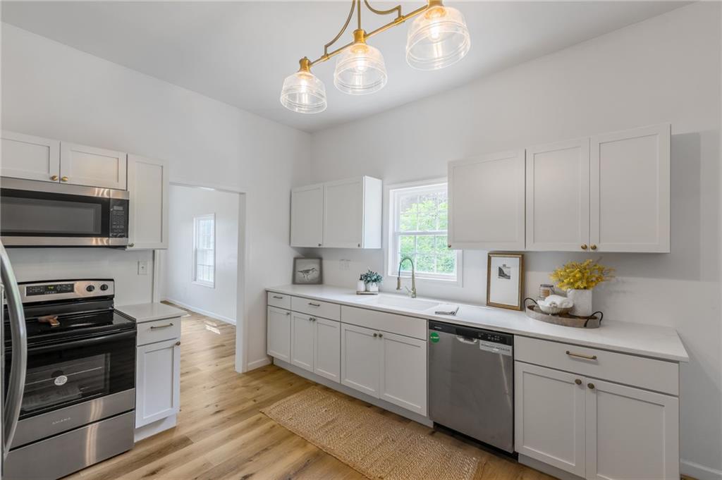 Totally renovated cute house with almost everything brand new, this 3-bedroom, 1-bath home is move-in ready. The main level features a spacious laundry/mud room and a beautiful kitchen with quartz countertops and plenty of space for a large eat-in area. Outside, you’ll find a large 2-car detached garage, off-street parking all on a large double lot