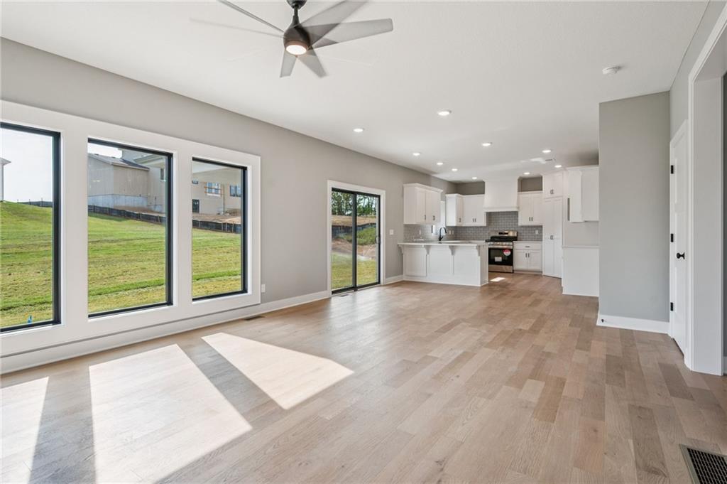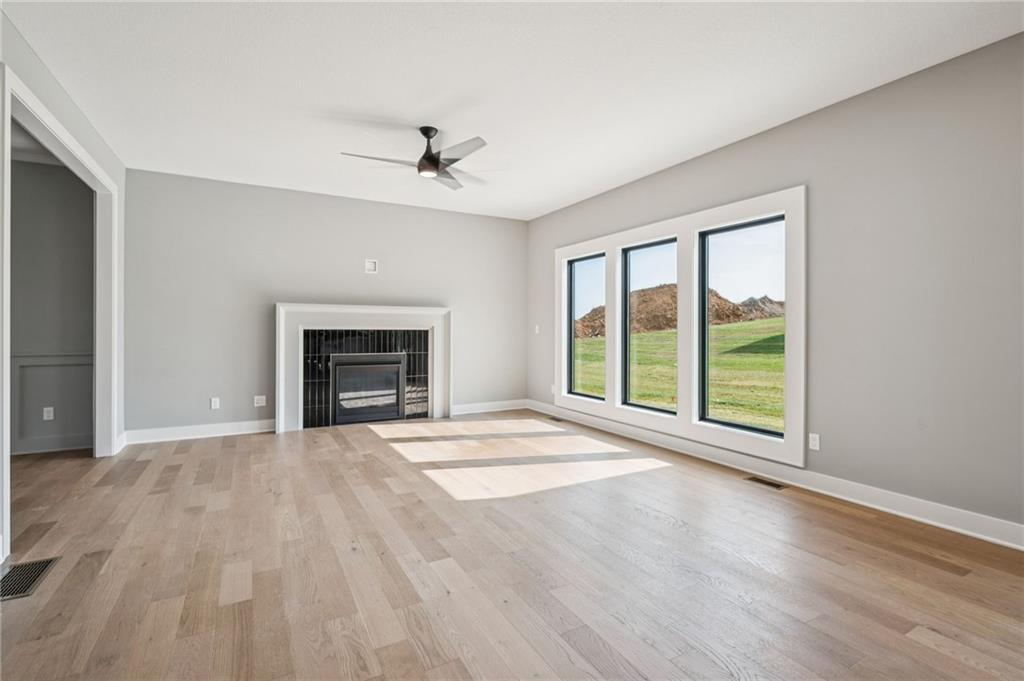 MOVE-IN READY! The Lincoln by Hearthside Homes – Lot 54, Homestead Hills Thoughtfully designed for modern living, The Lincoln combines flexibility, craftsmanship, and style. The main level features beautiful hardwood floors throughout and a versatile flex room—perfect for a home office, playroom, or quiet retreat. The spacious kitchen is the heart of the home, showcasing a large island, quartz countertops, custom cabinetry, and black windows that add a touch of modern elegance. An open layout connects seamlessly to the great room, creating the perfect setting for gatherings and everyday living. Upstairs, the primary suite delivers a true retreat. The spa-inspired bath includes a freestanding soaking tub, tiled shower with heavy-duty glass surround, dual vanities, and a huge walk-in closet that connects directly to the laundry room for added convenience. Three additional bedrooms and a full bath complete the upper level, providing space for family, guests, or hobbies. A nice-sized front porch and covered patio extend the living space outdoors, while the upgraded I-joist floor system ensures quiet, solid floors throughout the home. Every Hearthside home exceeds industry standards with a 12-month builder warranty, independent third-party inspections, a verified video sewer line scope, and professional HVAC duct cleaning—ensuring your new home is delivered in pristine, top-tier condition. Located in Homestead Hills within the Liberty School District, offering access to a pool,