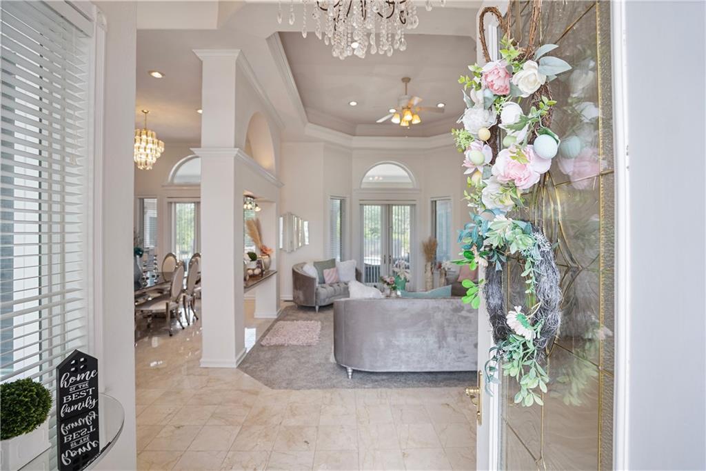 Luxury Estate on 1.6 Acres with Resort-Style Amenities. Nestled in one of the area’s most sought-after neighborhoods, this stunning custom-built luxury home offers refined living on a private 1.6-acre lot. Built in 2005 and impeccably maintained, this spacious residence features over 3,025 square feet on the main floor, plus a full finished basement, blending timeless elegance with modern comfort. From the moment you enter the marble tile foyer, you'll notice the craftsmanship and attention to detail, including soaring 14-foot ceilings that create an airy, open ambiance throughout. The heart of the home is the gourmet kitchen, adorned with granite countertops, custom cherry cabinetry, and a cozy hearth room just off the kitchen — perfect for intimate gatherings. This home offers four spacious bedrooms and four full bathrooms, along with a dedicated office and two additional rooms in the basement ideal for a home theater, exercise space, or game room. The lower level also features a large family room with a bar, and the pool table stays, making it the perfect space for entertaining. Outside, you’ll find a true backyard retreat with an inground pool complete with a waterfall, a hot tub, and a fire pit — perfect for relaxing evenings or hosting guests. The property includes a three-car attached garage, a two-car detached garage, and a large circle driveway that offers both convenience and curb appeal. Additional highlights include a stucco exterior for low-maintenance elegance, dual HVAC systems and water heaters for comfort and efficiency, and ownership interest in the neighborhood pond, adding to the peaceful and picturesque setting. This property truly has it all—space, privacy, upscale features, and access to a prestigious neighborhood. Schedule your private tour today and experience luxury living at its finest.