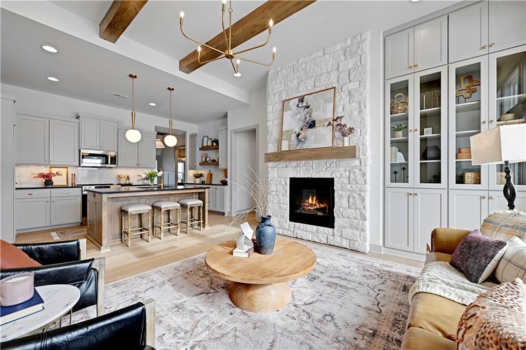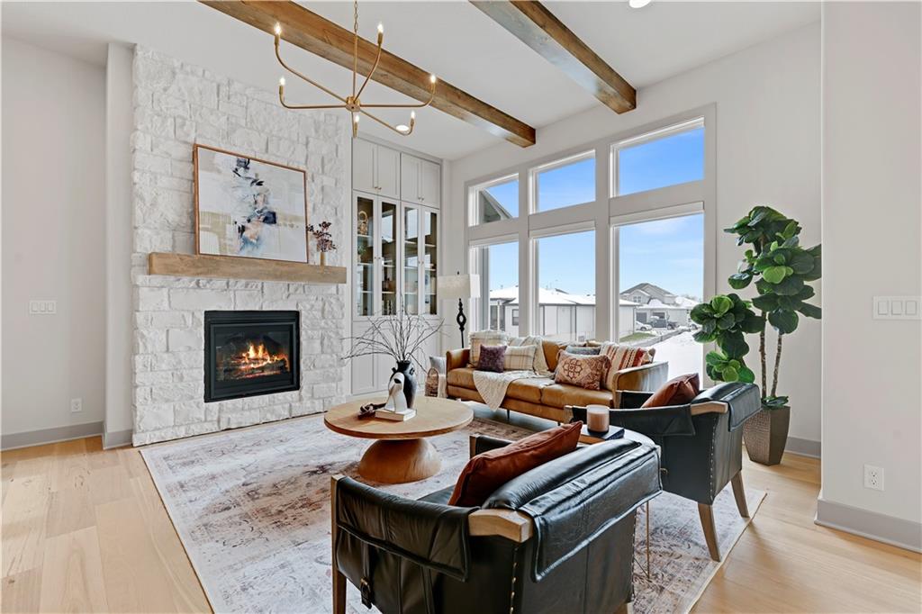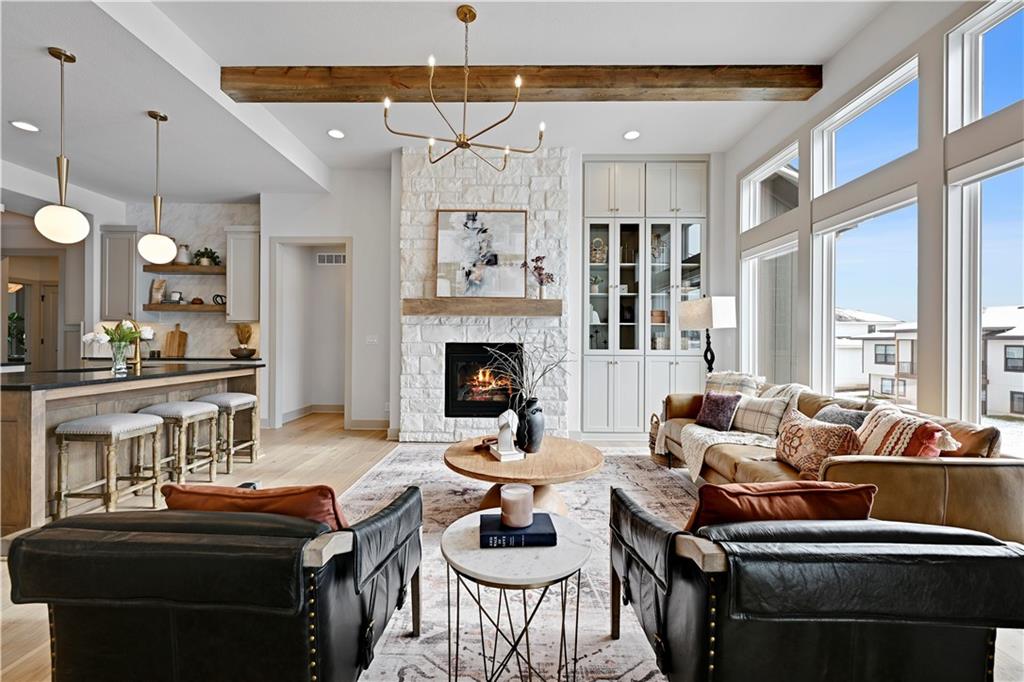 MODEL HOME NOT FOR SALE. The "Sonoma" Reverse by SAB Homes is here! This beautiful Villa has everything you need for your maintenance provided living. As you enter the foyer you are greeted with custom trim at ceiling and wainscotting. Stunning hardwoods that lead you into the Great Room with fireplace. The kitchen island faces the back windows with sink in island for convenience with all your entertaining. Pantry and great counterspace for all your needs. Dining room off the great room with access to covered patio. The Primary En-Suite is on the opposite side of the main level with windows to view back yard, bathroom with double vanity & shower - leads into the walk-in closet. Bedroom 2 and Bathroom 2 is off the entry. Mud hall and laundry is in the hallway behind the kitchen as you walk in from the garage. The lower level has bedroom #3 with walk-in closet with bathroom #3, Rec Room and wet bar next to the walkout-walkup feature that allow perfect access to back yard. Option for a 4th bedroom with optional walk-in closet. Excellent storage space as well. All in the coveted Heritage Ranch, A Lambie-Rieke Community, with Amenities Galore such as state-of-the-art pool, clubhouse, trails, pickleball. play area, half-court basketball, ponds and so much more coming soon! This community provides a wonderful lifestyle and right next to the 1,238 Acre Heritage Park with Dog Park, Sports Parks, Golf, Lake, Trails and so much more! Contact Onsite Agents for Estimated Completion of homes on site, and design selections. Sales Office OPEN 7 Days/Week, located at LOT 65. Renderings &/or images may show features and sq ft that are subject to change. Home is under construction. Welcome Home to Heritage Ranch - one of the last NEW Home Communities in Johnson County! LOT 79. Home is Under Construction with an Estimated Completion NOV 2025. Taxes and sizes are estimated.