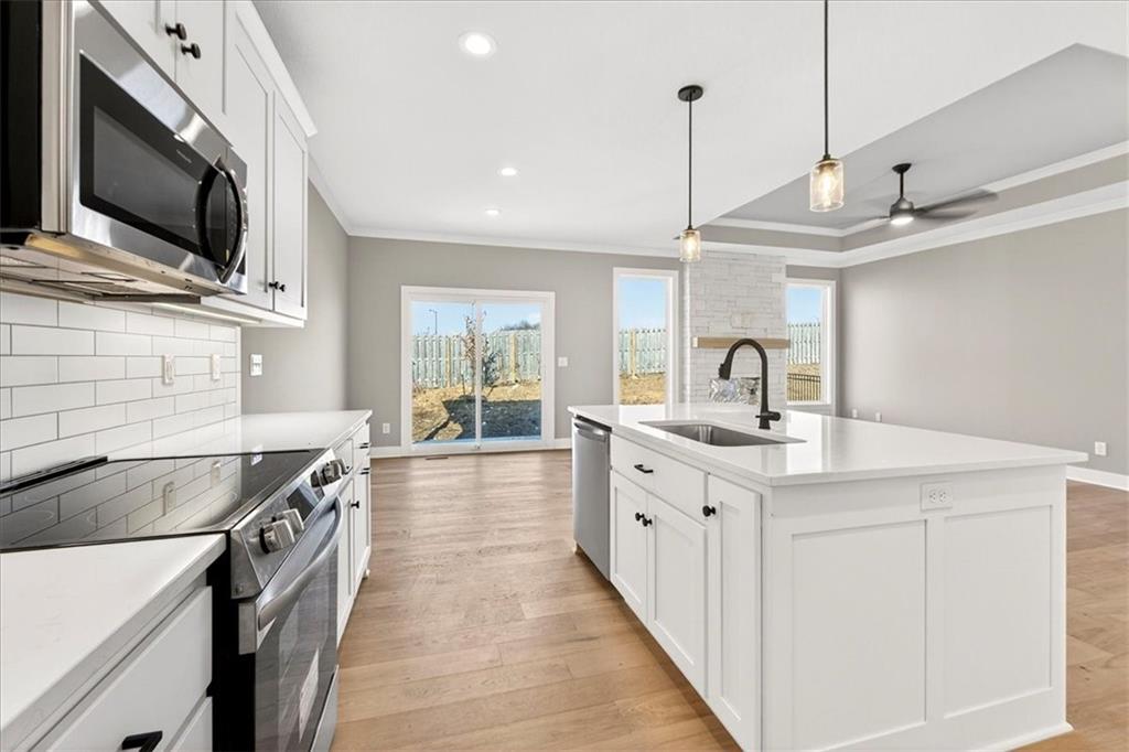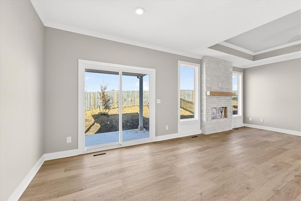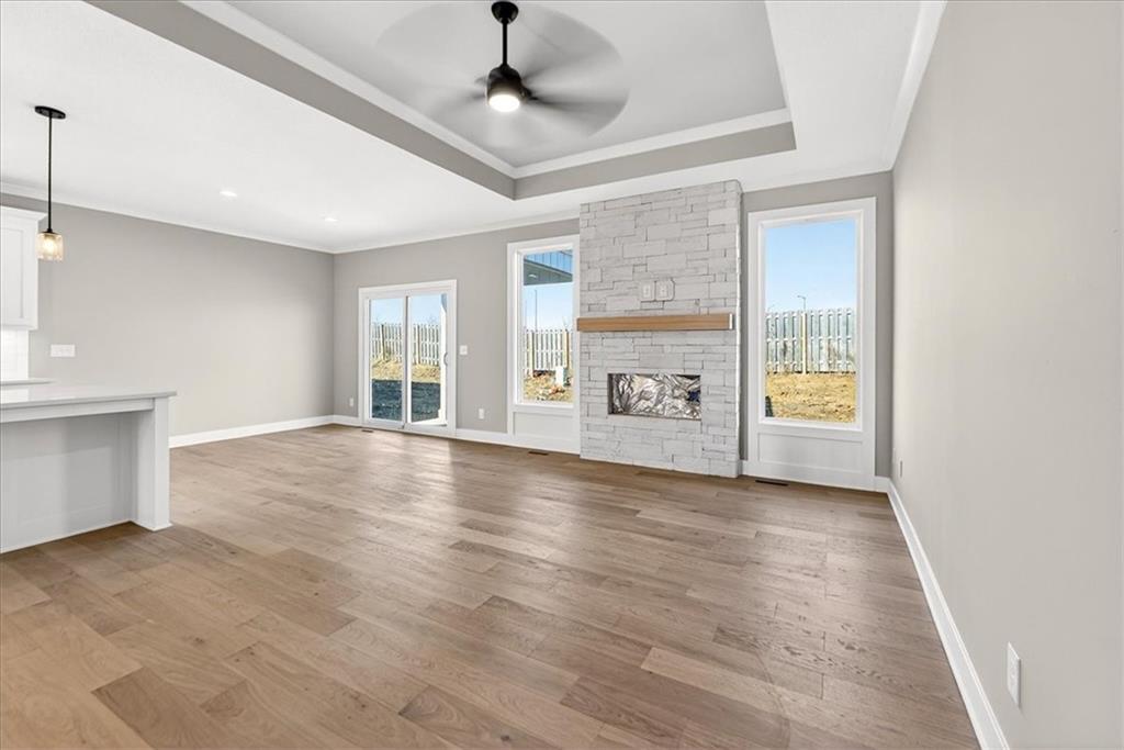 End of the Year Builder Incentive of $15,000 Flex Spend From Builder To Buyer! The Newberry by Lambie Homes is a stunning 3-bedroom, 2.5-bath reverse 1.5-story floor plan designed for modern living. Featuring 9’ ceilings on the main level, the open family room showcases a dramatic floor-to-ceiling stone fireplace with a 40" Allusion electric insert and flows seamlessly into the dining area and covered patio/deck which is perfect for entertaining. The main-level primary suite offers a spacious walk-in closet and convenient laundry access. The finished lower level includes a large family room, two additional bedrooms, and a full bathroom - providing plenty of space for family or guests. Located in Mize Hill, Lenexa’s newest maintenance-provided community, residents will enjoy walking trails, future community pool, and close proximity to Cedar Station Park and Mize Lake. Builder Incentives Available – Contact the community agent for details on current buyer savings for homes closing in 2025! Photos are of a model Newberry plan and may depict options not included in this home. Colors, finishes, and style may vary. Home is open Wednesday–Sunday, 12:00–5:00 PM. *For Builder Incentive, contract must close on or before 12/31/2025*