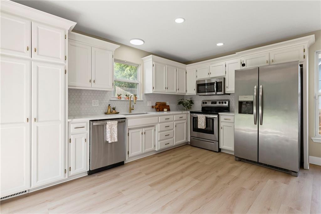 BUYER GOT COLD FEET - No Fault of seller! Stylish, Sophisticated & Move-In Ready – 3 Bed, 2.5 Bath + Bonus Lot Fully renovated with modern finishes and thoughtful design. Brand-new roof, all-new flooring, and updated bathrooms with new mirrors, countertops, fixtures, and tub/showers. Vaulted ceilings and a dramatic wall of windows fill the open living space with natural light. Sleek kitchen features new countertops, designer tile backsplash, recessed lighting, statement fixtures, and stainless steel appliances—all stay with the home. Full-size washer and dryer included. Unfinished basement adds 600 sq ft of potential—perfect for a gym, studio, or storage. Enjoy the patio for grilling and gatherings. Included with sale: Adjacent vacant lot at 1836 Kansas Ave offers rare flexibility — expand your yard, add a guest house, or develop and sell. Prime location: 1 mile to 18th & Vine, 3 miles to Crown Center, 5 mins to Power & Light, 6 miles to Plaza, 3.5 miles to Costco, 9 mins to Royals Stadium, and under 25 mins to MCI. Quick highway access connects you to KC’s best. Contemporary KC living at its finest. See full list of improvements and items staying with the home (including stored window treatments). Friendly and eager to help Owner/Agent.
