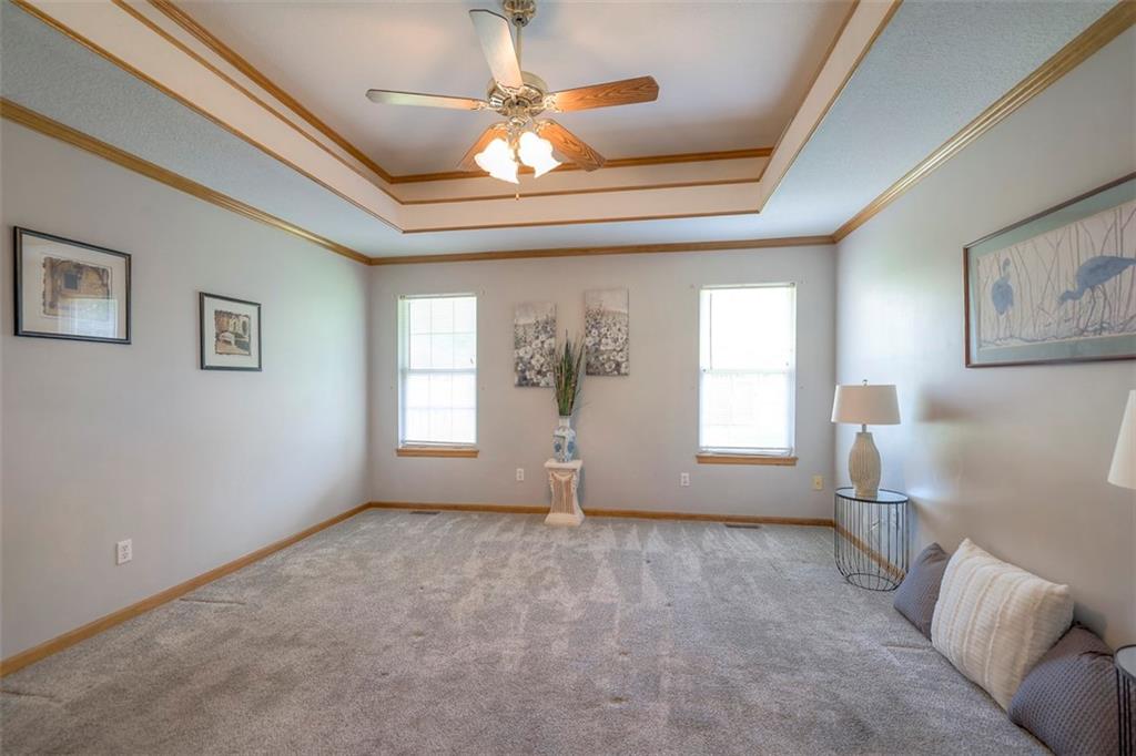 BACK ON MARKET - NO FAULT OF SELLER! Buyer's home did not sell. THIS IS A METICULOUS HOME! This well cared for home is a one owner home that was custom built on a corner lot. Low maintenance with vinyl siding, covered deck, and upgrades. Unique ranch plan with an open loft area that could be an office, playroom, or craft room flooded with natural light from large skylight. Primary bedroom and bath are on one side of the home with the other bedrooms and bath on the other side of the home. Primary bedroom features vaulted ceilings, fan and spacious size. Primary bath has a separate shower, whirlpool tub, double sinks and walk in closet. Soaring great room with ceiling fan, LVP flooring, fireplace and large plant ledges. Bedroom 2 also has a vaulted ceiling and plant ledge. Custom wallpaper finish in hallway. And there's more! Finished lower level with wet bar, custom cabinets and small refrigerator, ceiling fan and carpeted and also has a full bath with shower. There is still a large unfinished area for storage. Many updates including roof 3 years ago, HVAC 10 years, LVP flooring and carpets also updated. Beautiful quality built home in great area!
