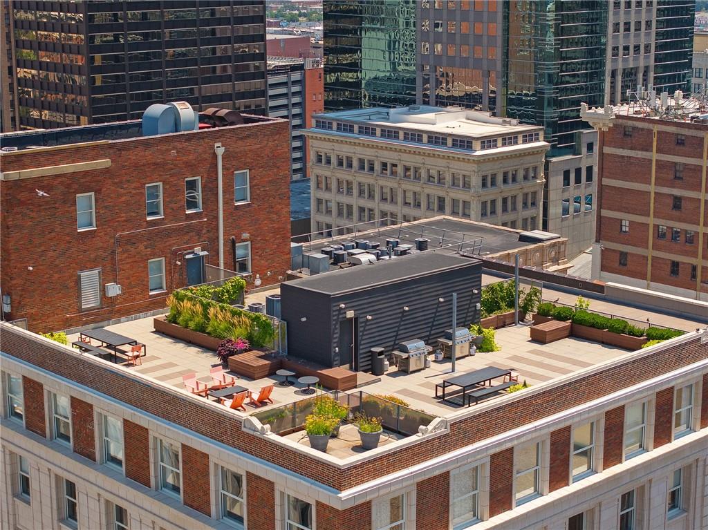 Welcome to 21 W 10th Street, #11C — a stunning 2-bedroom, 2-bathroom condo in the heart of downtown Kansas City. Perched on the 11th floor, this freshly painted unit boasts sweeping city views that shine day and night. The open-concept layout features large windows that flood the space with natural light, highlighting the modern finishes throughout. Enjoy unbeatable walkability to some of the city's best dining, nightlife, coffee shops, and landmarks — plus easy access to the streetcar. The building offers secure entry, rooftop access with panoramic skyline views, a bike room, basement storage, and dry cleaning valet service for added convenience. One dedicated parking spot is included, with additional spaces available for lease. If you're looking for a place to call home in the heart of the city, this one delivers.