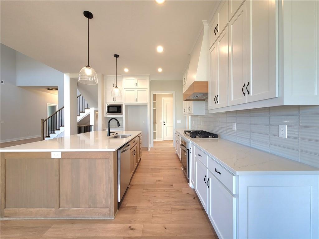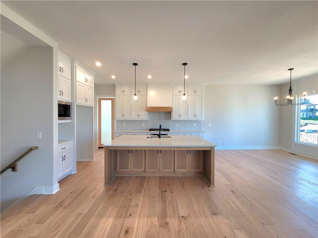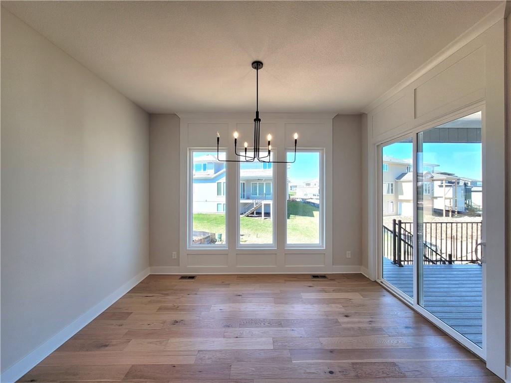 The Aspen floor plan by Coventry Builders. Move-in-Ready! This 4 bedroom + Loft, 4.5 bath, 1.5 Story home features a large front porch. The Great Room has a soaring two story ceiling and the open living area is complete with a beautiful fireplace, built-ins, and tons of natural light. The kitchen has lots of cabinet and countertop space and a huge island. The large pantry is adjacent. Beams in the Dining room ceiling add to the WOW and the Dining room opens to the large covered deck. The main level features a 2nd bedroom with it's own bath and walk-in closet. The spacious main level Primary Bedroom opens to the luxurious Mbath with a walk-in shower and free-standing tub. The large Master closet features plenty of storage possibilities. Connected to the master closet is the laundry room with a quartz countertop. The second level features a large loft that overlooks the Great Room. There are two additional spacious bedrooms on this level. This home is on a Daylight lot, has a 3 car garage and a large covered deck. Don't miss seeing this home! Community amenities are open and include: clubhouse w/ fitness room, dog spa, gathering room and catering kitchen; 4 pools including a zero entry outdoor pool, outdoor kiddie pool, Indoor lap pool and indoor machine pool; sport court for basketball and pickleball, and playground. The new Blue Valley elementary school, Aspen Grove, is located in the center of the community.