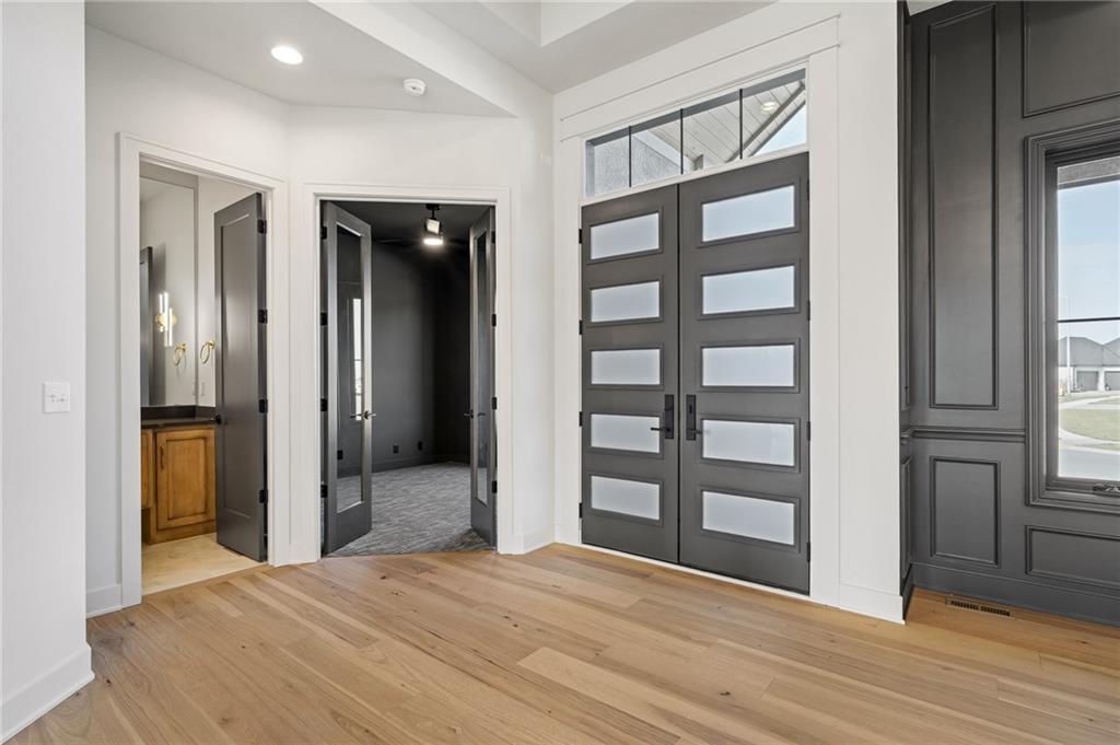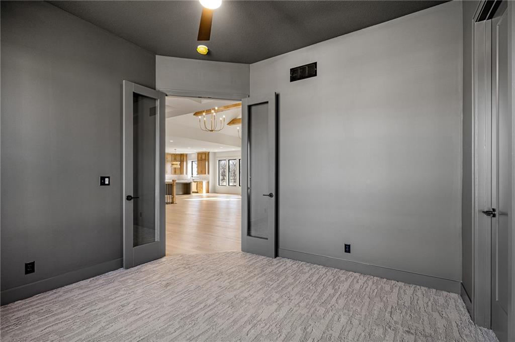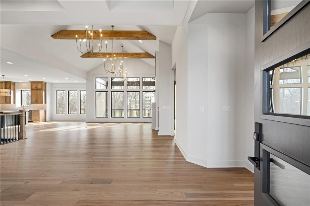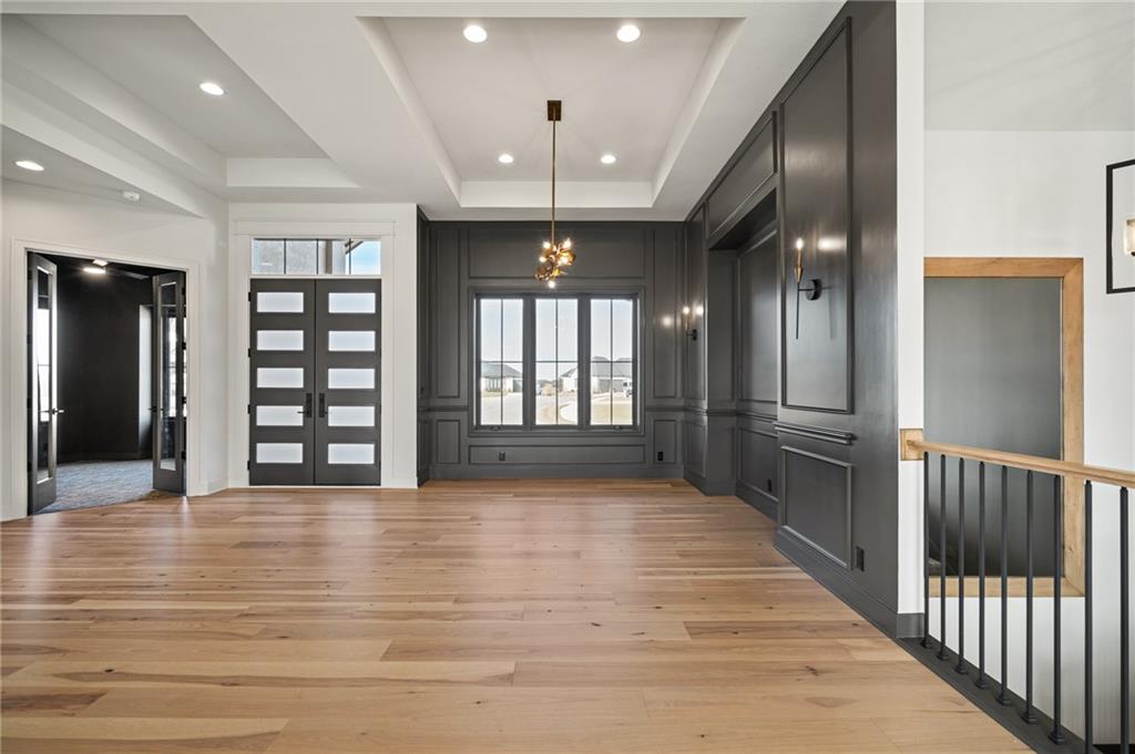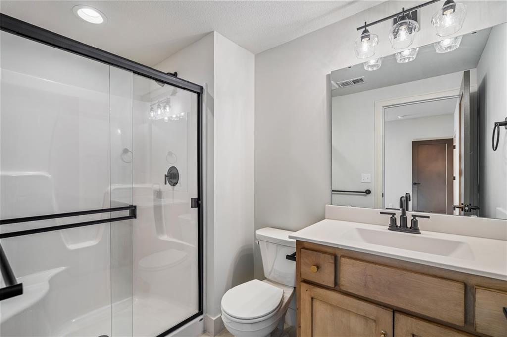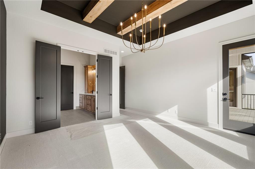 PRICE REALIGNMENT WITH HUGE REDUCTION! This beautifully designed reverse 1.5-story home showcases contemporary style and exceptional upgrades throughout. The open main level features a great room with exposed beams and a modern fireplace, flowing seamlessly to a covered deck with fireplace offering an amazing view of the golf course. The main-level primary suite offers a vaulted ceiling with custom wood accent wall, abundant natural light, and private access to a screened deck. The spa-like bath includes an oversized soaking tub, quartz countertops, tile floors, custom cabinetry, walk-in shower, and a spacious walk-in closet with built-ins. The chef’s kitchen, breakfast area and vaulted dining room provide both functionality and elegance. A second bedroom and full bath complete the main level. The walkout lower level features family room with a custom bar with quartz counters, two additional bedrooms, and 2.5 baths with quality finishes. Modern luxury meets everyday comfort — don't miss out on seeing this home. Creekmoor amenities include use of 2 swimming pools, exercise facility, tennis/sports court, pickle ball court, 100 acre private lake, 18-hole championship golf course, clubhouse with restaurant/and bar and walking paths.
