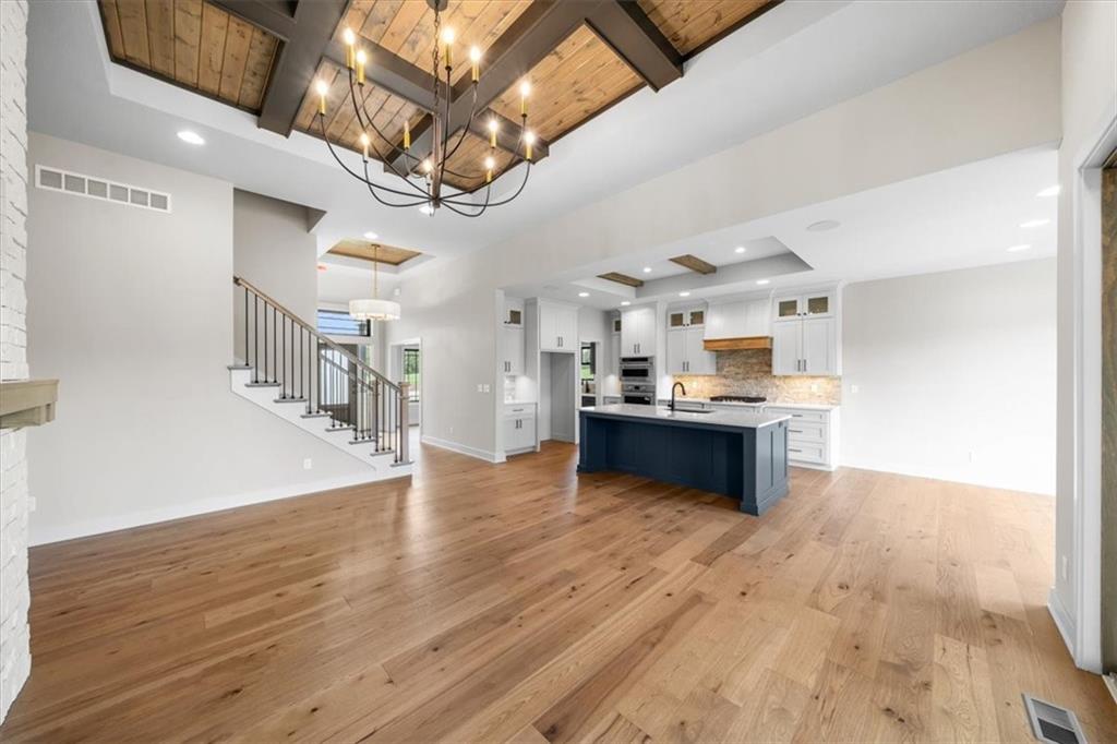 Your dream home on 3 acres is ready—and opportunities like this don’t last long. This breathtaking 1.5-story property offers the perfect blend of comfort, style, and space with 5 bedrooms and 4.5 bathrooms designed to fit a variety of lifestyles. Step inside to an impressive open floor plan with soaring vaulted ceilings and a wall of windows that bring in gorgeous natural light. The chef’s kitchen stands out with quartz countertops, a large island, and a butler’s pantry—ideal for everyday convenience or hosting your largest gatherings. Enjoy effortless indoor-outdoor living on the covered deck, complete with a fireplace for year-round relaxation and entertainment. The main-floor primary suite provides a quiet retreat with a spa-style bath featuring a double vanity, oversized walk-in shower, luxurious soaker tub, and a spacious closet that connects directly to the laundry room. A flexible main-level room easily serves as a home office or guest space. Upstairs offers three additional bedrooms and two full bathrooms, giving everyone room to spread out. The finished basement adds even more value with a generous rec room, wet bar, 5th bedroom, full bath, and extra storage. Just 20 minutes from the heart of Lee’s Summit, this home delivers country living without sacrificing convenience. Don’t wait—this is one you’ll want to see in person.
