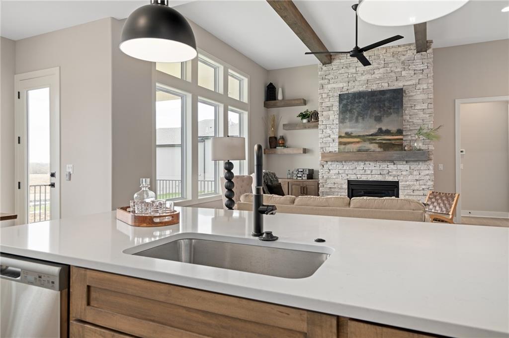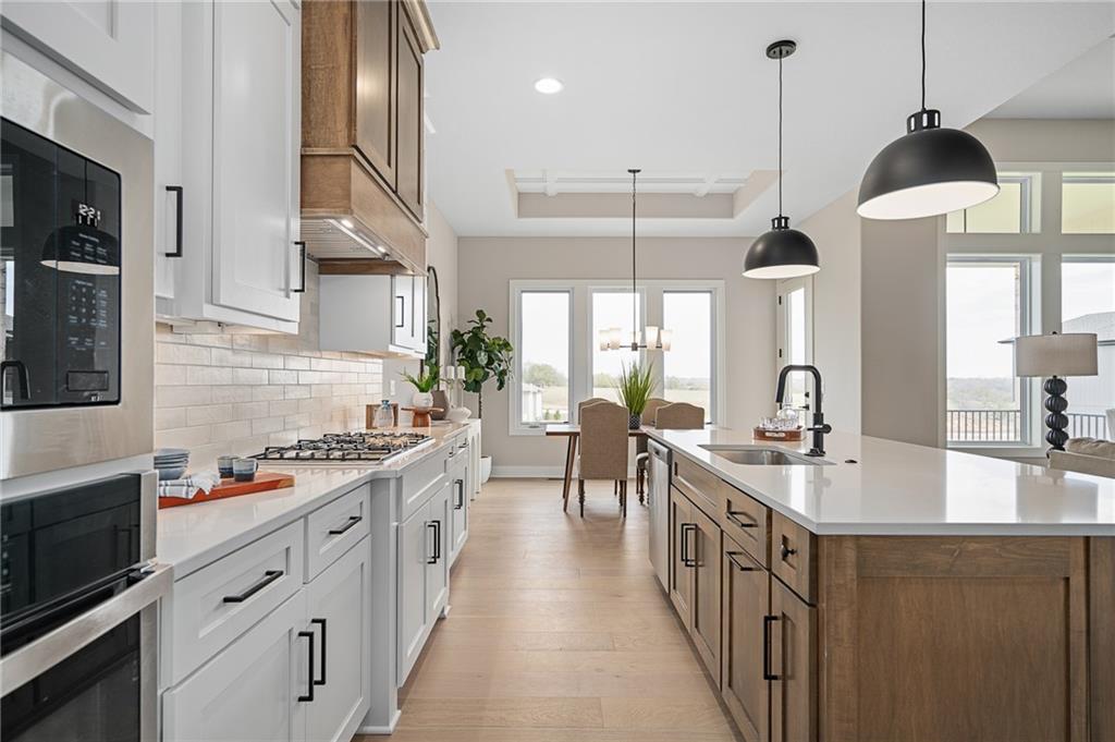 Pauli Homes brings their popular Sicilian 2 plan to Johnson Counties newest maintenance provided community, Prairie Canyon! Conveniently located just west of K-7 off of College Blvd.! This fabulous Rev. 1.5 sty. is on a cul-de-sac, perched on a ridge, backing east with extended beautiful views! Open concept: Great rm / Dining / Kitchen w/spacious island, large walk-in pantry, FP & includes a versatile 1st flr. guest rm. or Den. L-shaped lower-level design allows for plenty of recreation space & family/media area plus 2 bedrooms w/a share bath. Exceptional quality & value you've come to expect from from Pauli Homes in a signature Prime Development Co. Community!