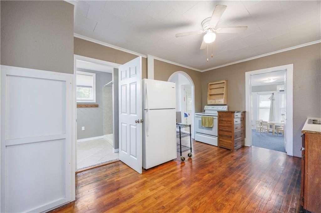 Welcome to this charming single level 3-bedroom, 1-bath home in the heart of Fredonia, KS. With inviting curb appeal and character throughout, this property features original hardwood flooring in parts of the home along with taller ceilings- adding warmth and timeless style. Two of the three bedrooms boasts huge oversized closet which offers rare storage space not often found in older homes. The layout is comfortable and functional, making it a great option for both homeowners and investors alike while easy to maintain. One of the standout features of this property is the fully equipped 1-bedroom guesthouse located on-site. Complete with its own kitchen and ¾ bathroom, this separate living space offers flexibility for extended family, guests, or even potential rental income. Whether you're looking for your first home or an income-generating opportunity, this unique property delivers both charm and versatility.